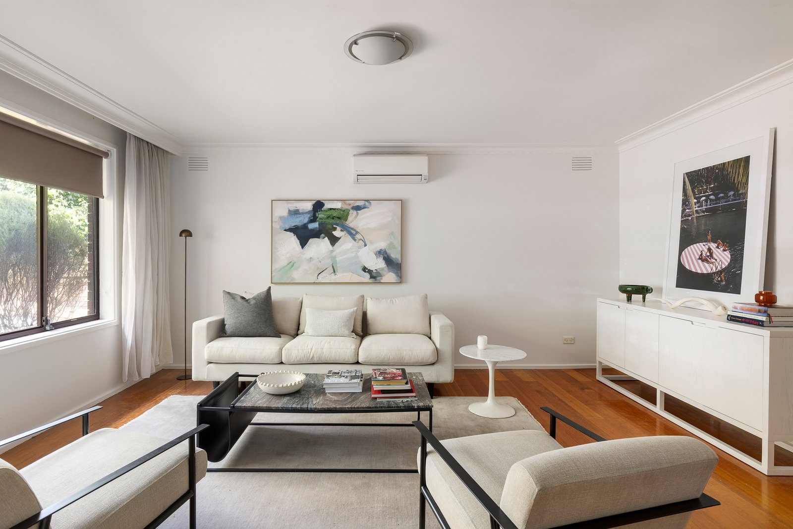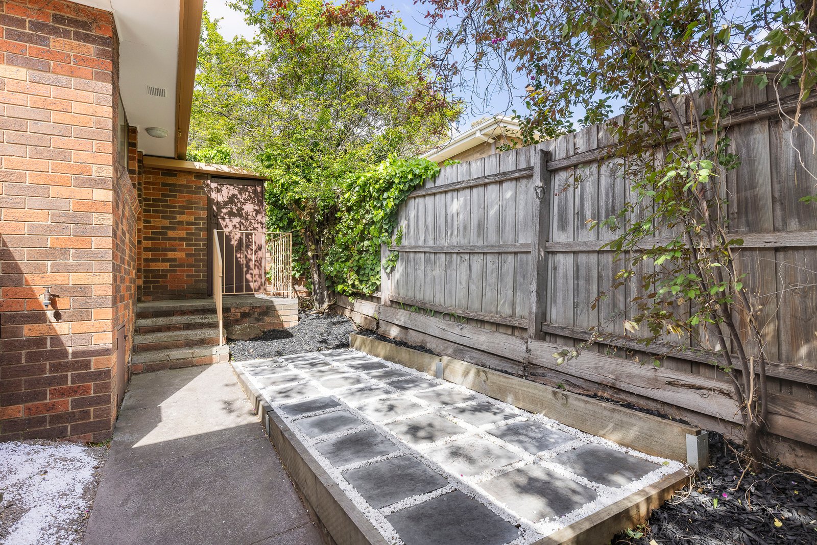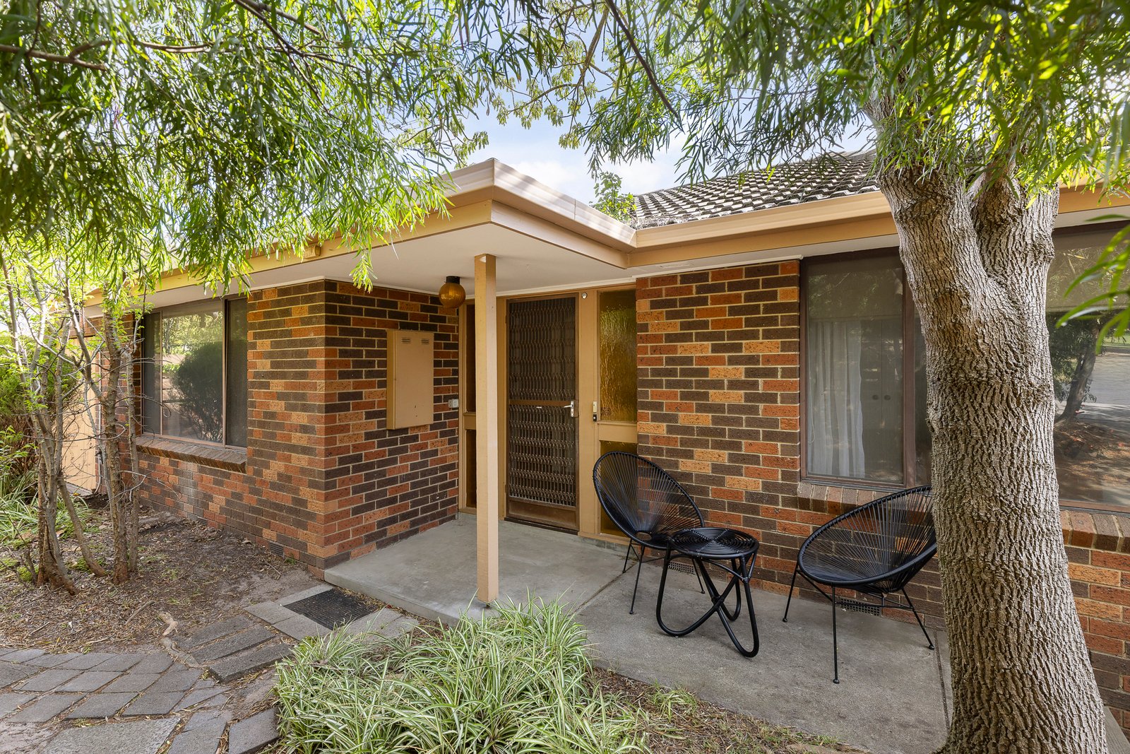 Positioned at the front of an older-style boutique complex of only three, with its own street frontage plus a dedicated driveway and two outdoor areas on title, it offers an appealing low-maintenance lifestyle. The interior features polished hardwood floors, a generous living and dining room combined with a separate kitchen/meals area, flowing through an adjoining laundry to a rear courtyard garden with an outdoor dining area. There are two bedrooms, both with built-in robes, including a main with an ensuite, and a skylit bathroom. Other features include a reverse-cycle air conditioner (living room) and two rarely available garages with courtyard access.