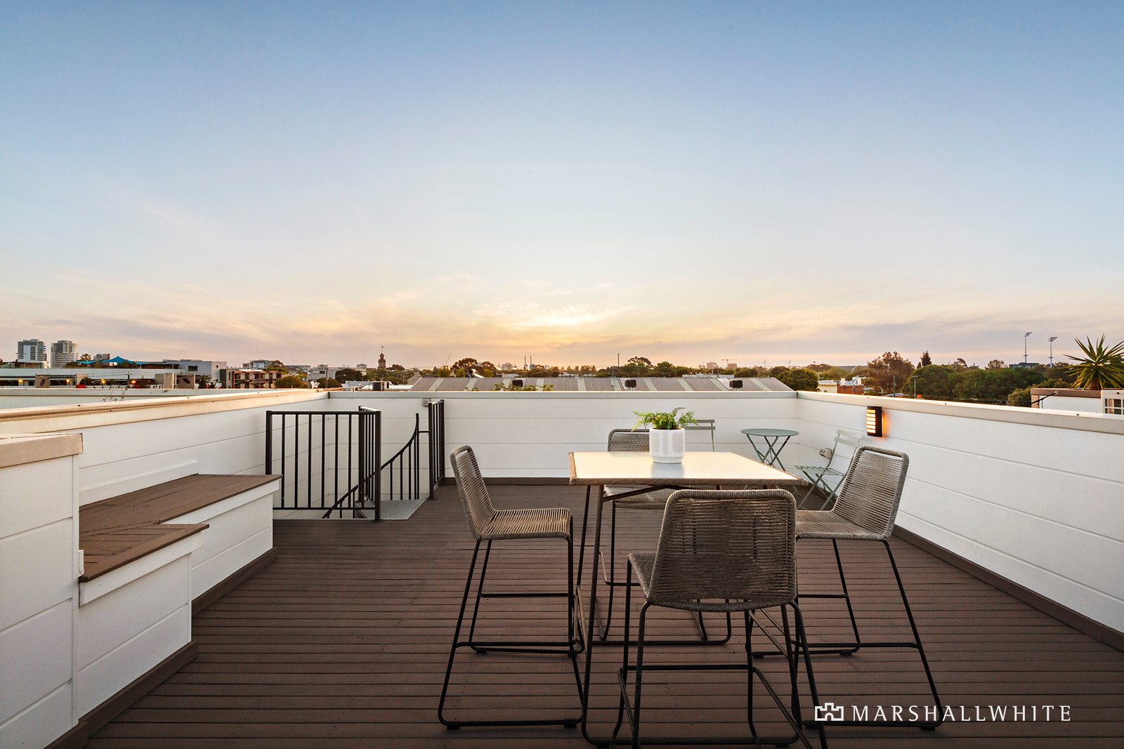 Presenting sophisticated style and architectural flair, this inner-urban showpiece delivers an aspirational standard of luxury steps from animated lifestyle precincts, South Melbourne Market and every imaginable attraction. Nestled within a peaceful laneway on the edge of Bay Street, this modern masterpiece with a tandem garage and spectacular city views reveals an idyllic sense of light, space and entertainment, juxtaposing its industrial-inspired exterior.