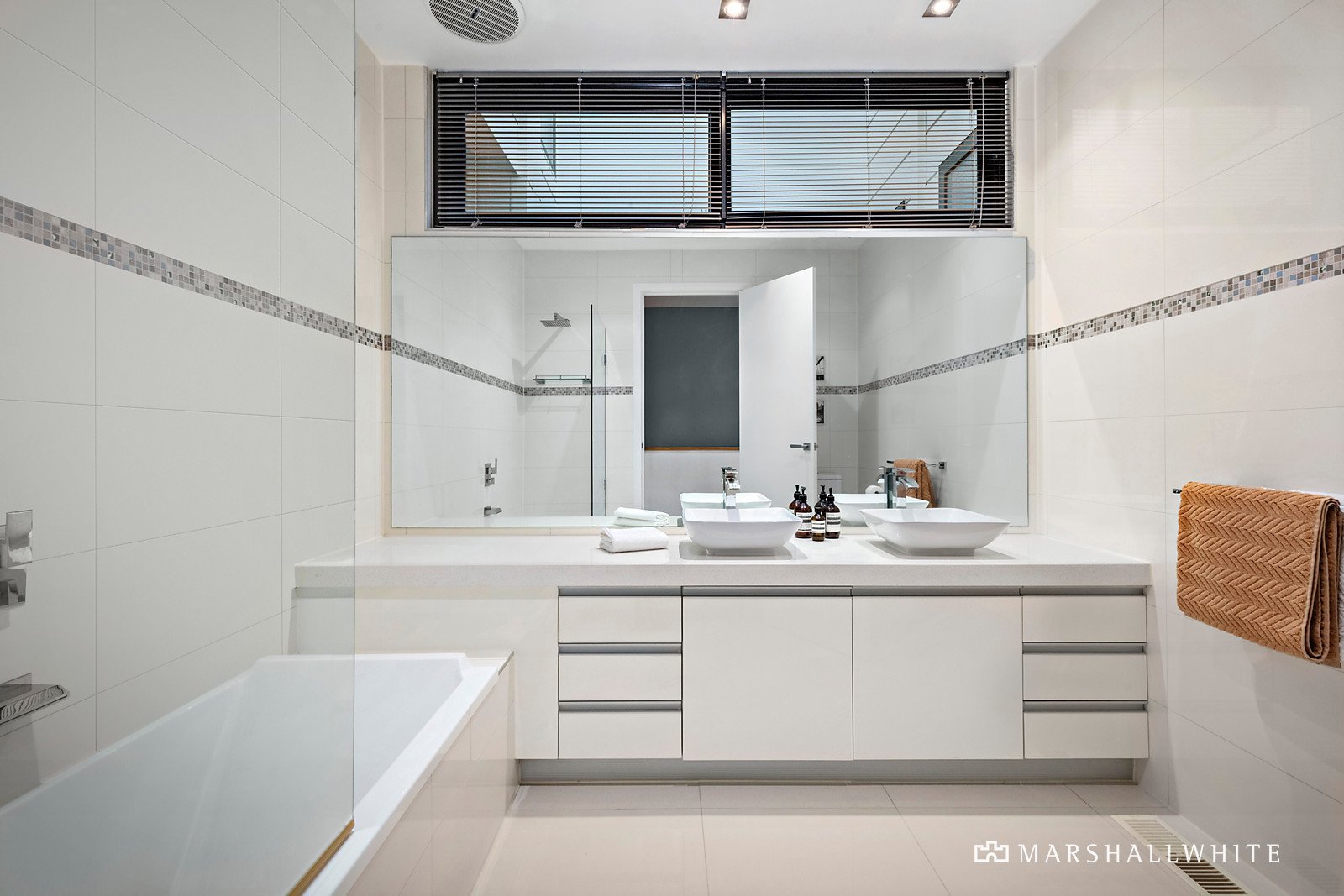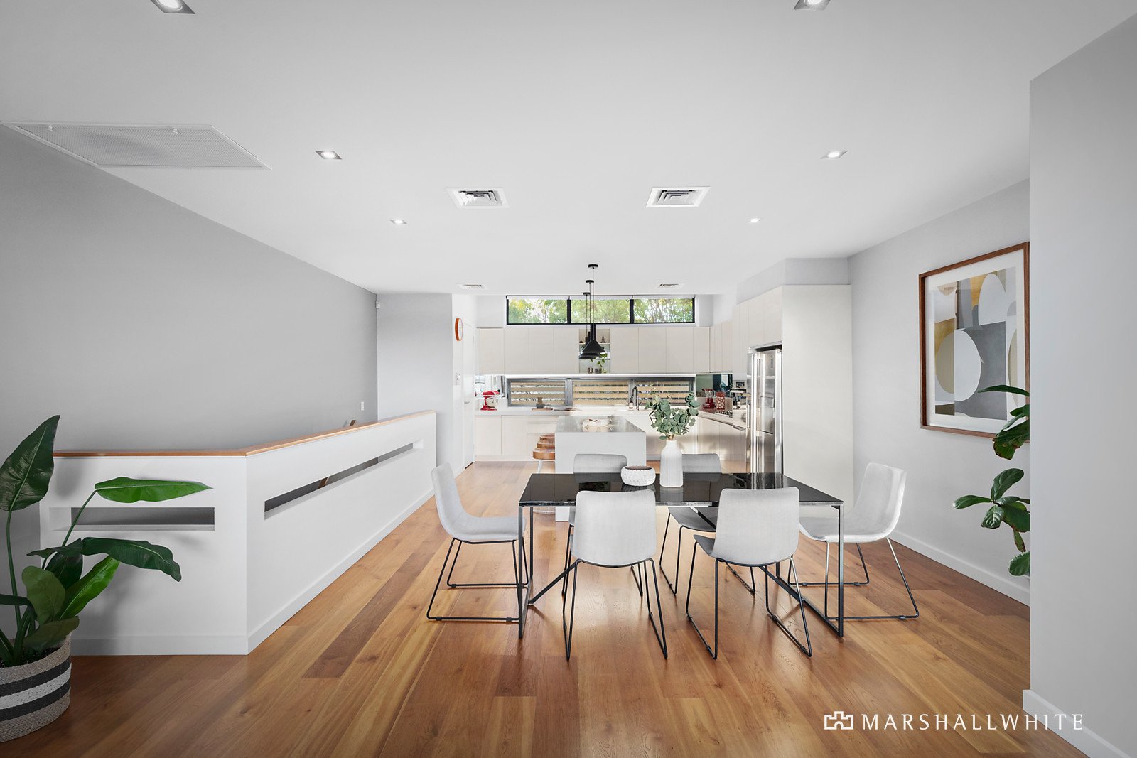Wonderfully zoned accommodation invites a sense of security and peace, with a ground-floor guest suite offering the ease of an ensuite and the flexibility of a home office or second living area. Further up, three additional bedrooms, including the main bedroom with a deluxe twin vanity ensuite and fitted walk-in robes, are matched with an equally stylish central bathroom.