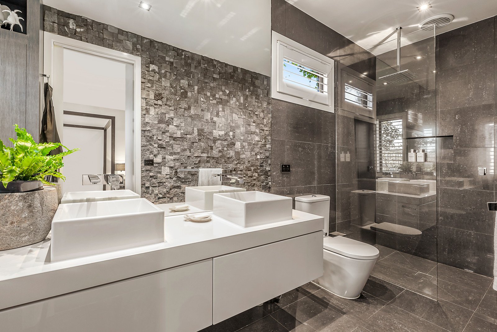 Upstairs, the master bedroom is a showpiece with brilliantly designed walk-in robes, a Juliette balcony and the five-star indulgence of an ensuite in which evocative dark tiling and a textured stacked-stone feature wall are certain to draw the eye. Also upstairs, a second living area offers families the possibility of a teen retreat whilst the remaining two bedrooms share access to a large family bathroom.