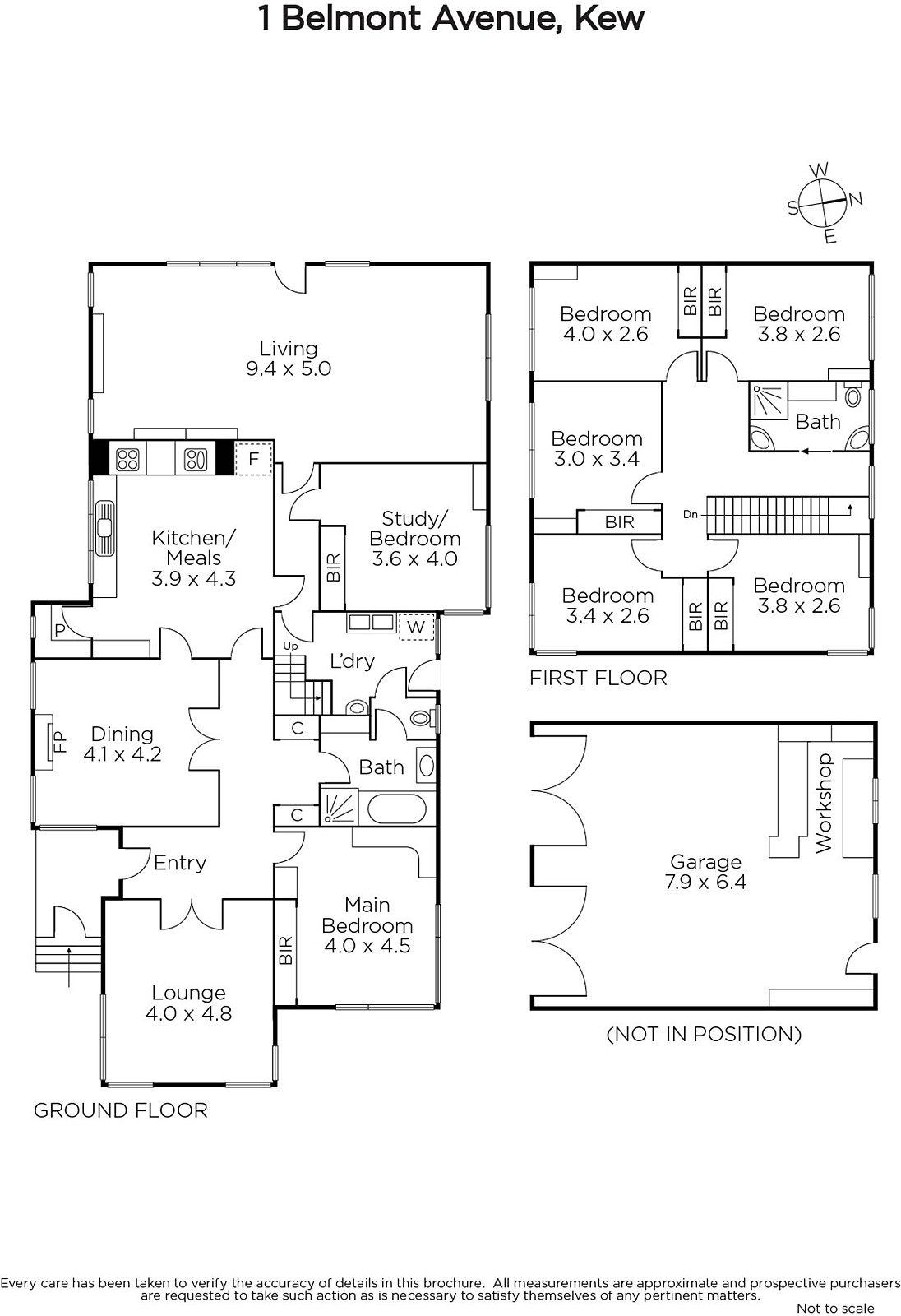 The interior which offers scope for updating if desired, comprises entrance hall leading to a formal sitting room and separate dining, downstairs main bedroom (BIRs), period-style bathroom, kitchen/meals and laundry. Plus a study and generous informal family living and dining room with OFP leading to a large garden with established trees and shrubs. Whilst upstairs has tree-top views, a further four bedrooms all with BIRs, Rumpus room /5th Bed Room and a second family bathroom. Other features include security alarm with timed external lights, gas heaters & R/C air conditioners, rain water tank and double garage with workshop/storage and dual access from Stirling Street.