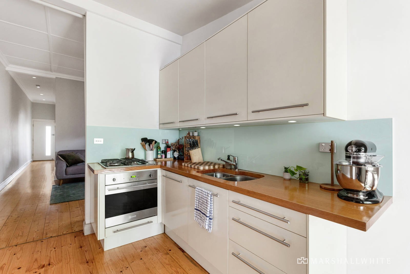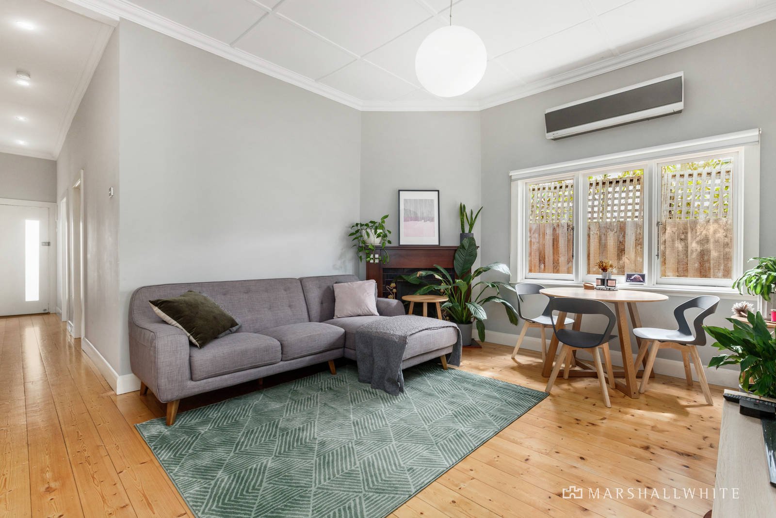 Baltic pine floors and high ceilings define the entrance hall, generous living and dining room with an open fireplace and the well-appointed modern kitchen. The living areas extend out to a covered deck overlooking the lush leafy fully landscaped north-facing private garden, a serene oasis for al fresco dining and entertaining. The two double bedrooms each with built in robes share a stylish bathroom.