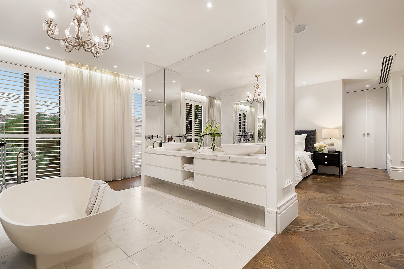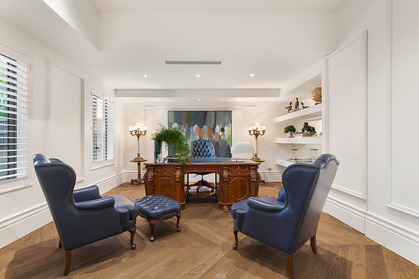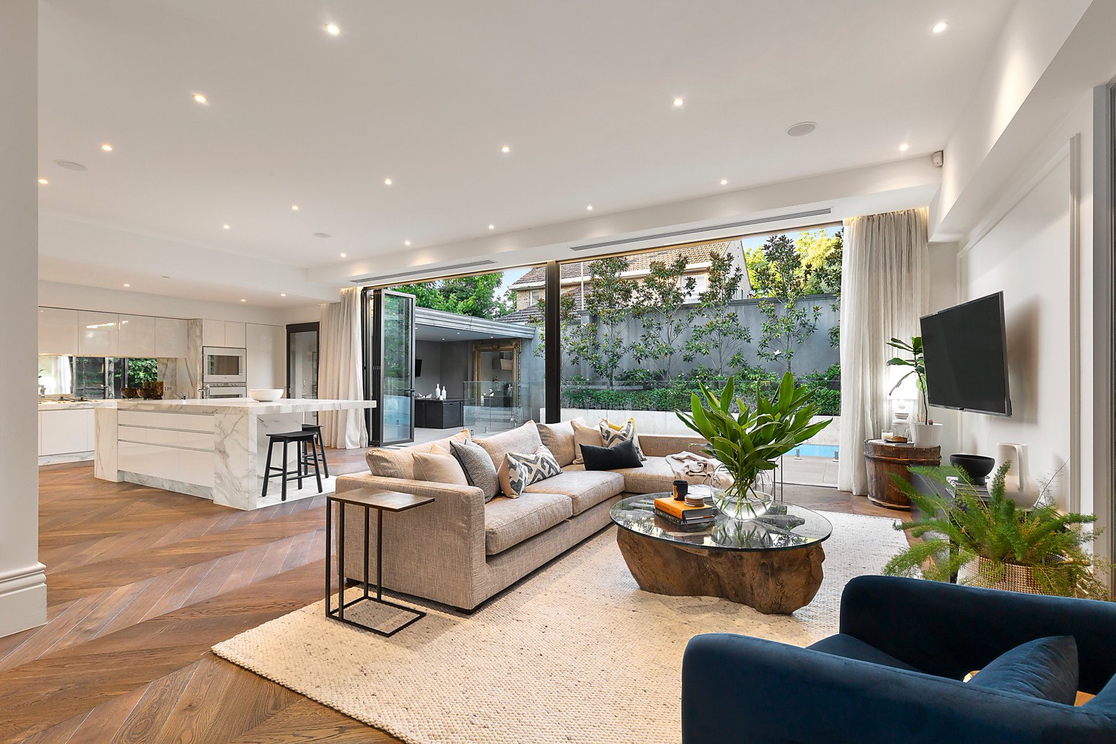 Herringbone parquetry floors, decorative paneled walls and high ceilings are highlighted in the expansive sitting room and beautiful formal dining room with a 2-way pebble fire and fabulous wine display room. The gracious study or library is an ideal home office with a discreetly concealed marble bathroom. Spectacular in scale, the sun-drenched open plan living and dining room features a state of the art marble kitchen boasting Gaggenau appliances including coffee maker and steamer, integrated Liebherr fridge/freezer and a butler's pantry. Bi-fold doors connect the living area completely to a stunning north-facing landscaped paved garden with self cleaning heated pool and a spacious covered al fresco terrace with full BBQ kitchen and TV. The opulent main bedroom with deluxe marble ensuite and walk in robe sets a benchmark in luxury that is matched by a second bedroom with lavish ensuite and robe, two additional bedrooms with robes and shared ensuite. A sensational home theatre, powder-room, laundry and 5-car garage are on the basement level.