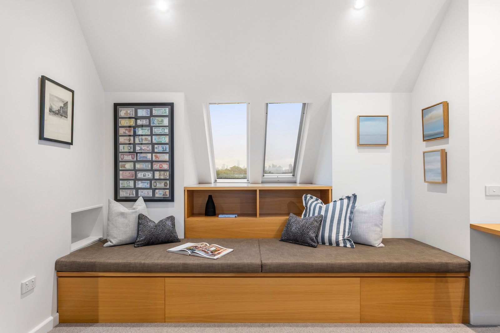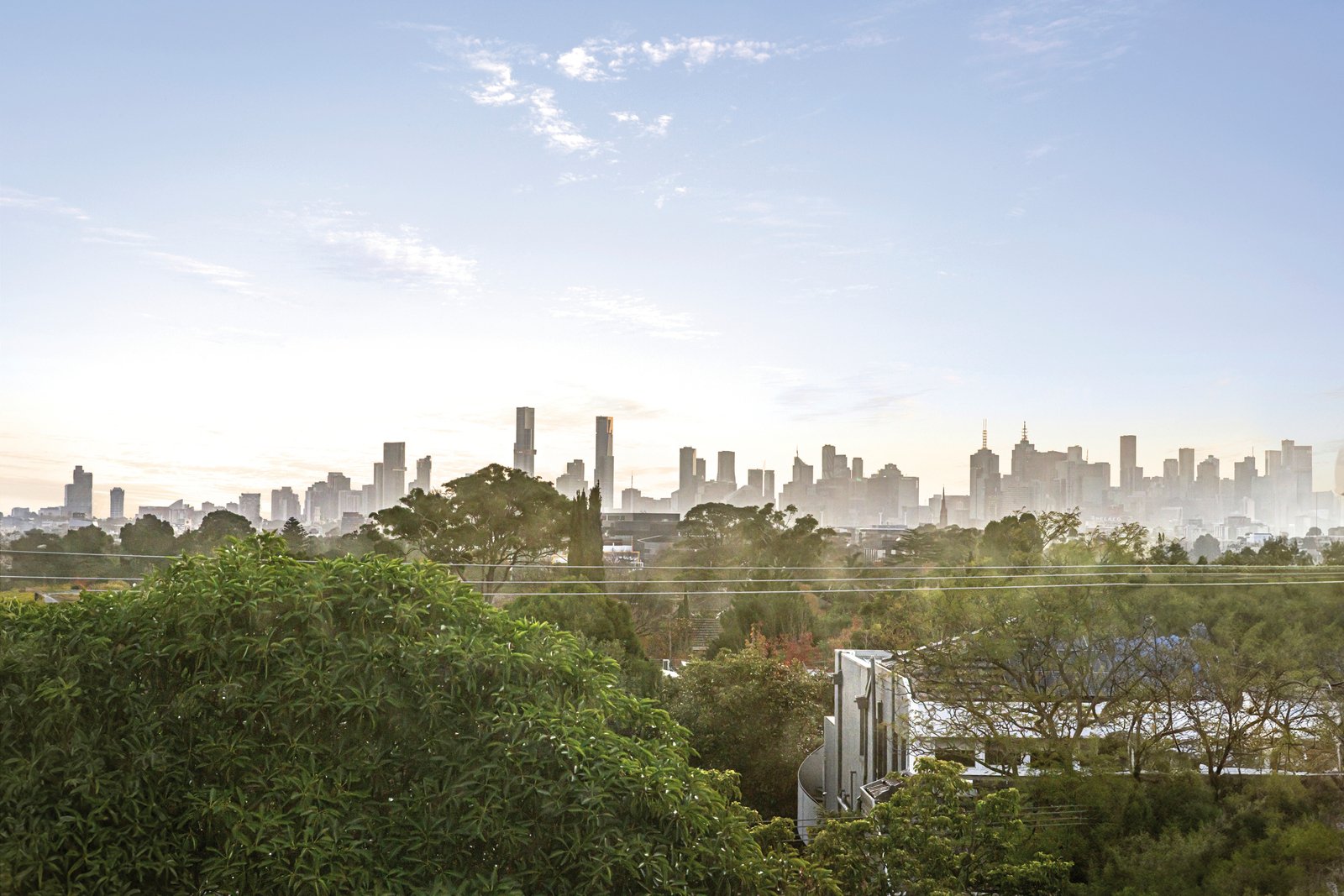 Complemented by three first floor bedrooms, including a main bedroom with an ensuite and dual WIRs and a family bathroom. The top level has an additional bedroom, study and City skyline views.