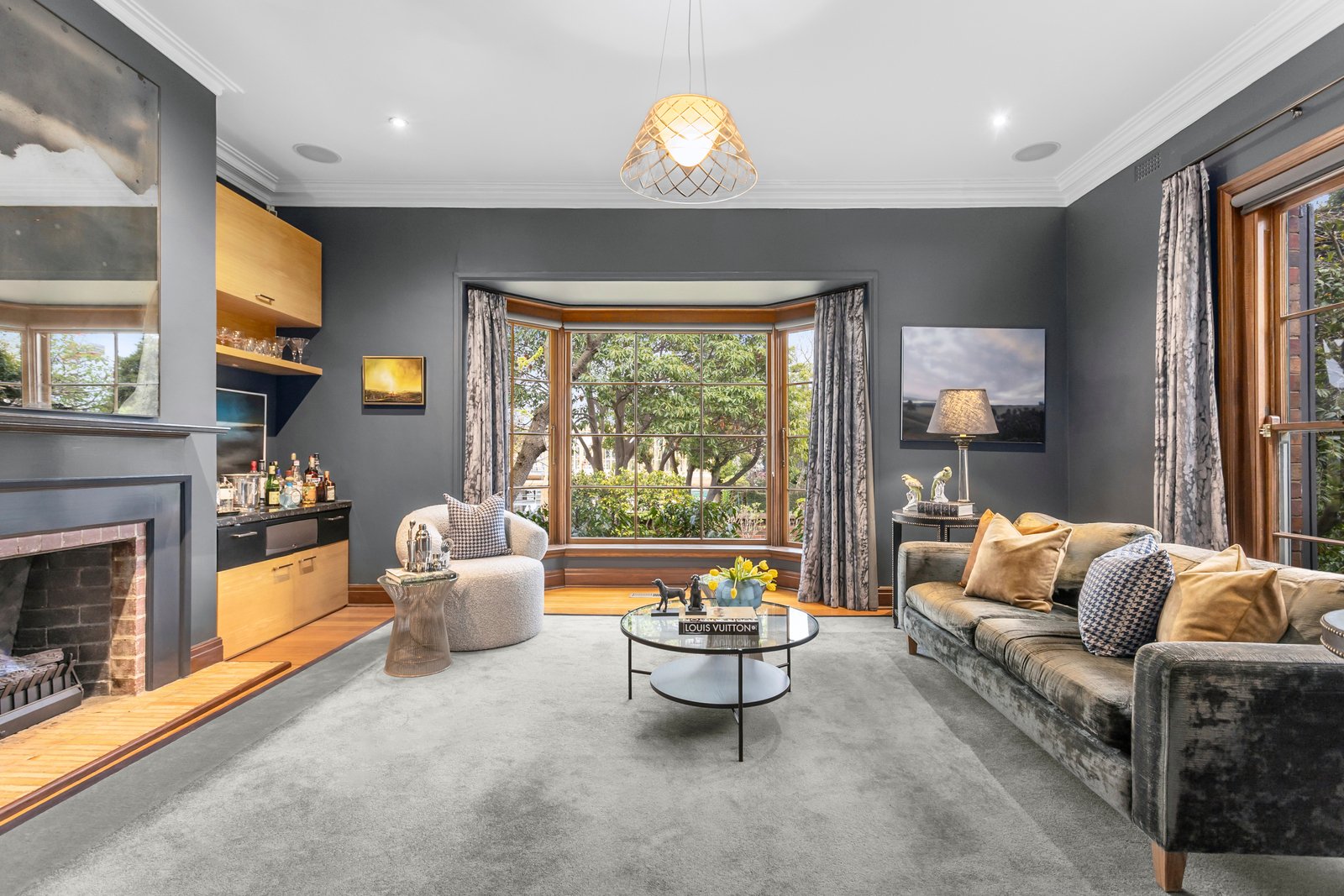 The interior features the spacious proportions typical of its era and stunning light-filled family living and indoor/outdoor entertaining spaces with the capacity to cater for small groups or larger milestone events with ease. Featuring beautiful, polished hardwood floors and exquisite light fittings, with a wide entrance hall leading to a formal sitting room with a bay window, formal dining room, study, downstairs guest bedroom with ensuite and a laundry. Through a passage-way library to a brilliant family domain with high ceilings and windows incorporating a superb entertainer’s kitchen equipped with stone bench-tops, prestige Miele and Bosch appliances and a butler’s pantry. Opening to a courtyard and external multi-function studio/rumpus room with a powder room. All connecting to a wide terrace and rear garden edged by hedges and ornamental trees - providing privacy to the raised paved outdoor dining and entertaining areas including a 12-metre pool.
