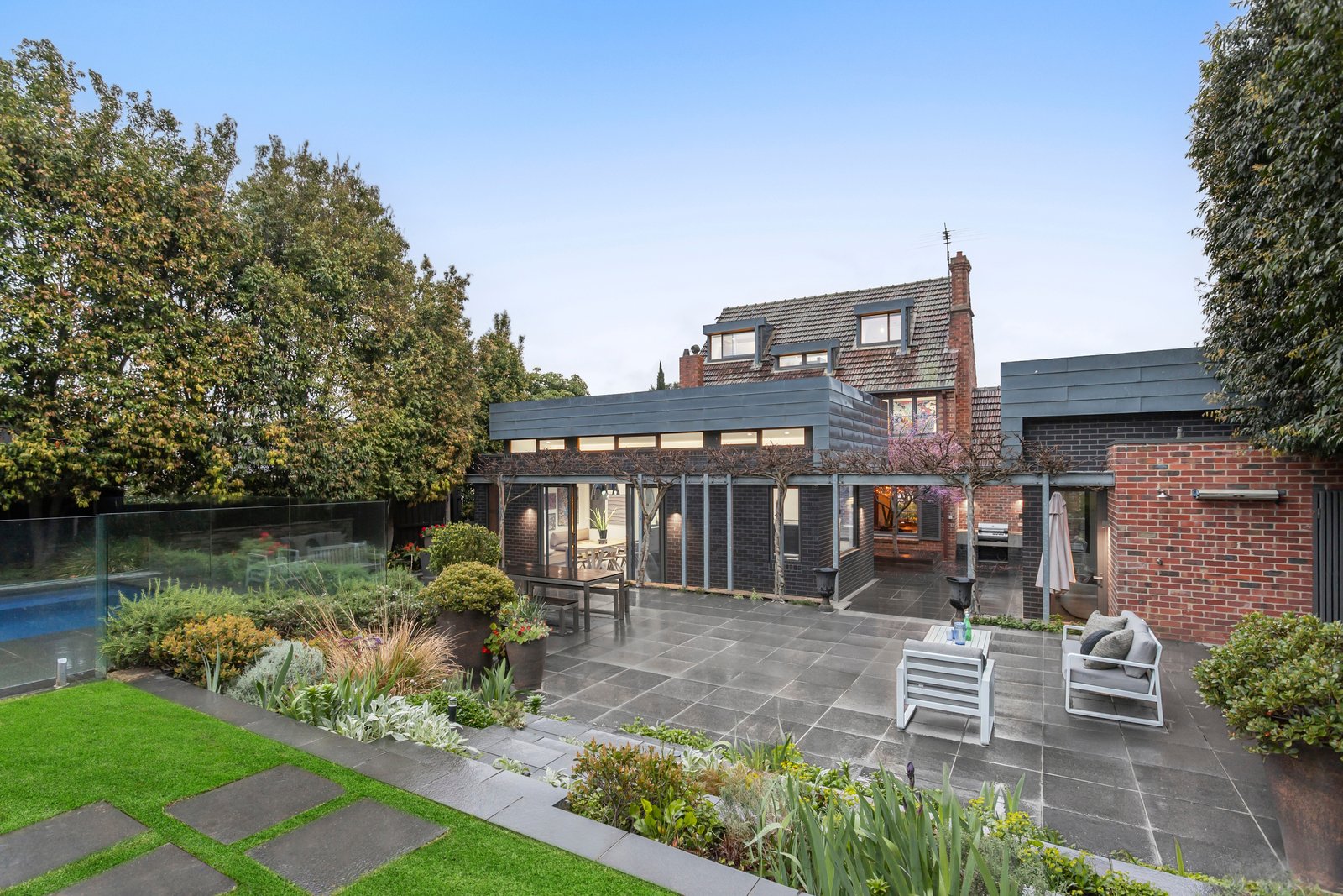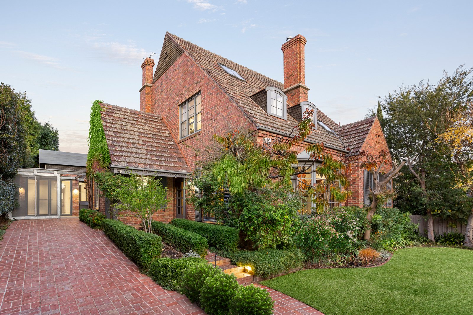 Gracing a magnificent deep, garden allotment spanning 1,155sqm approx. combined with an impressive street presence and attractive façade; this superb solid Hawthorn brick family residence c1939 is a classic example of old English styling with its high roof line and dormer windows. Situated in an elevated position, it is enviably located in the Scotch Hill precinct. Progressively renovated and extended by the current owners in collaboration with Anne-Marie Rush Interior Architecture, it has sympathetically retained its period attributes within a flexible floorplan over three levels; with the top level providing 180-degree panoramic views of the City skyline and surrounds.