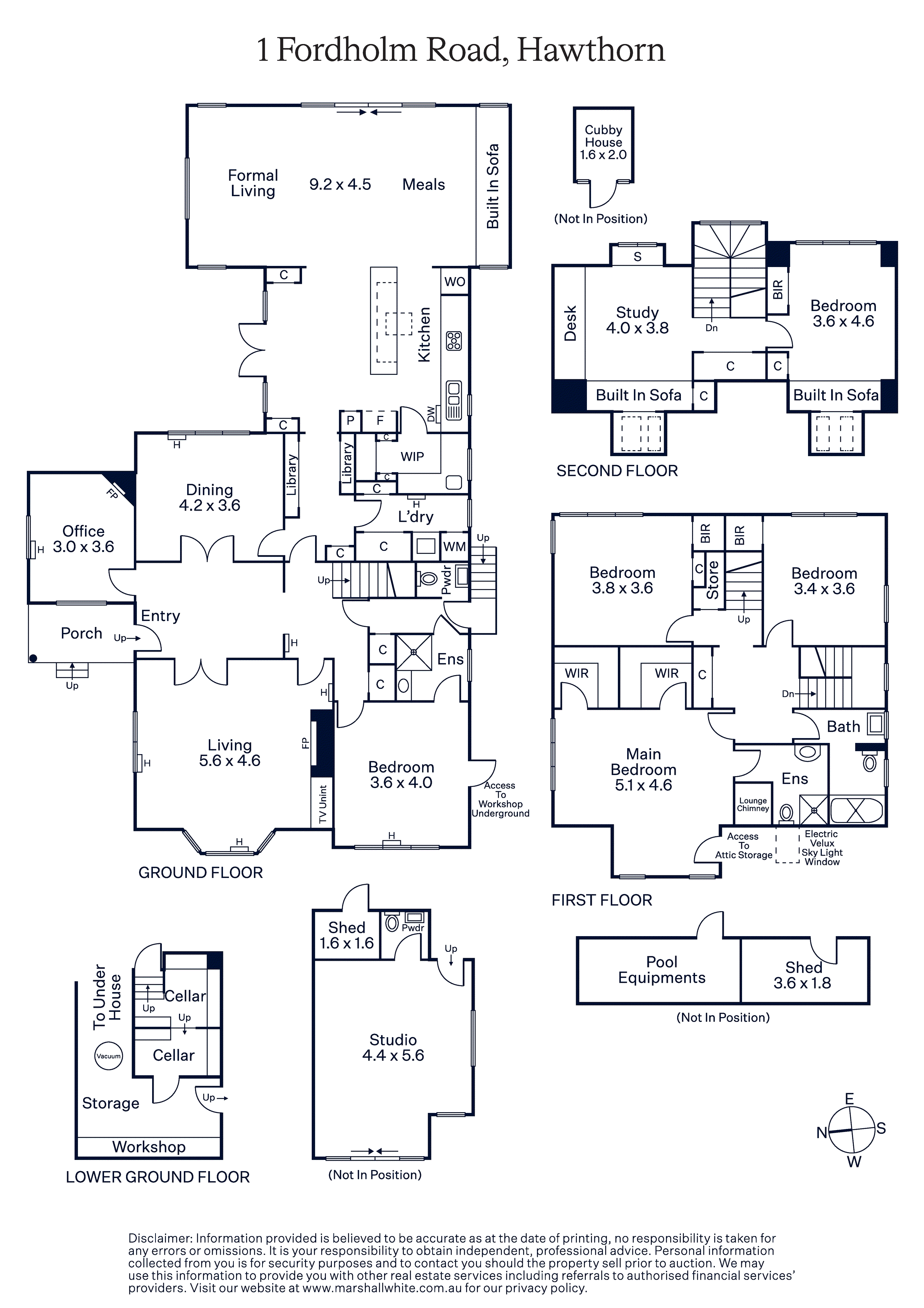 Other comprehensive appointments include front gate security intercom, a back-to-base alarm, ducted heating and R/C air conditioners (family living and top level), gasLFP (sitting room), heated terrazzo floors (family living and external multi-function room), overhead fans (upstairs bedrooms), ducted vacuum, surround sound to formal living areas, extensive storage including an attic and garden shed, a 1,000 bottle approx. cellar and workshop, underground water tank and irrigation system, vegetable garden and potting shed, trampoline and cubby house; plus auto gates with off-street parking.