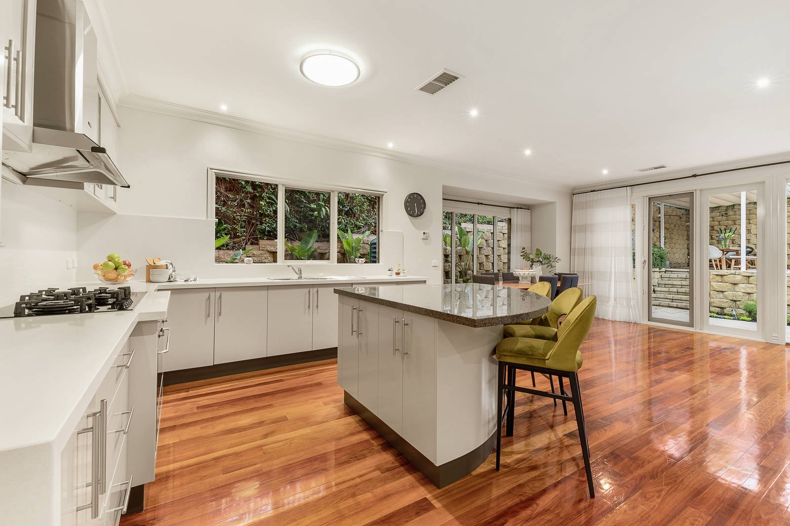 This stylish contemporary family residence is enviably situated in an elevated position with leafy outlooks across H.A. Smith Reserve in the highly regarded Scotch College Hill precinct. Surrounded by beautiful mature trees the home was cleverly designed to take advantage of a large allotment with a gentle uphill slope to the north featuring a split-level terraced garden and in-ground pool. Whilst the northern rear aspect and large strategically positioned windows flood the interior with plenty of natural light and deliver lovely garden vistas from the home.