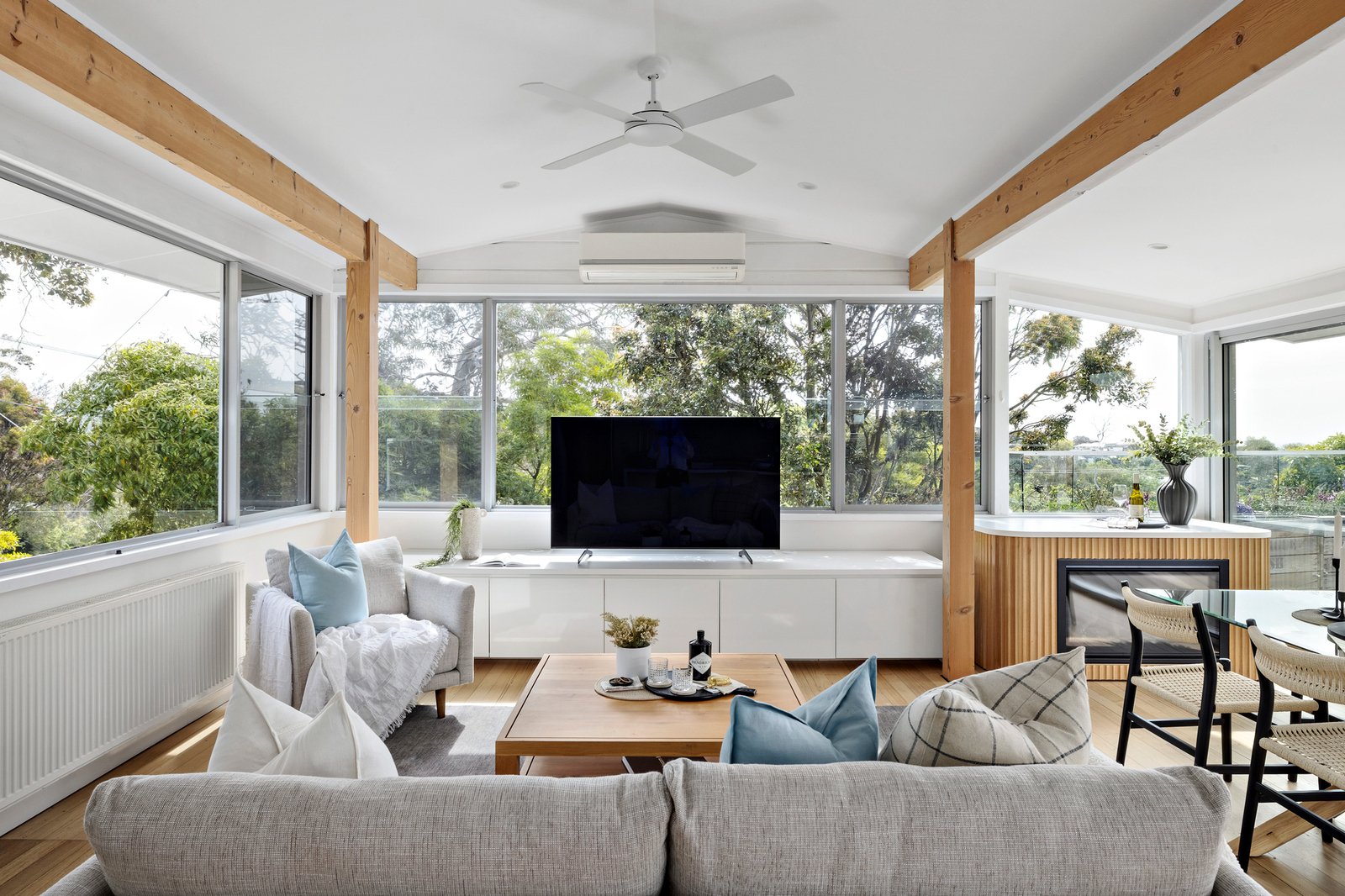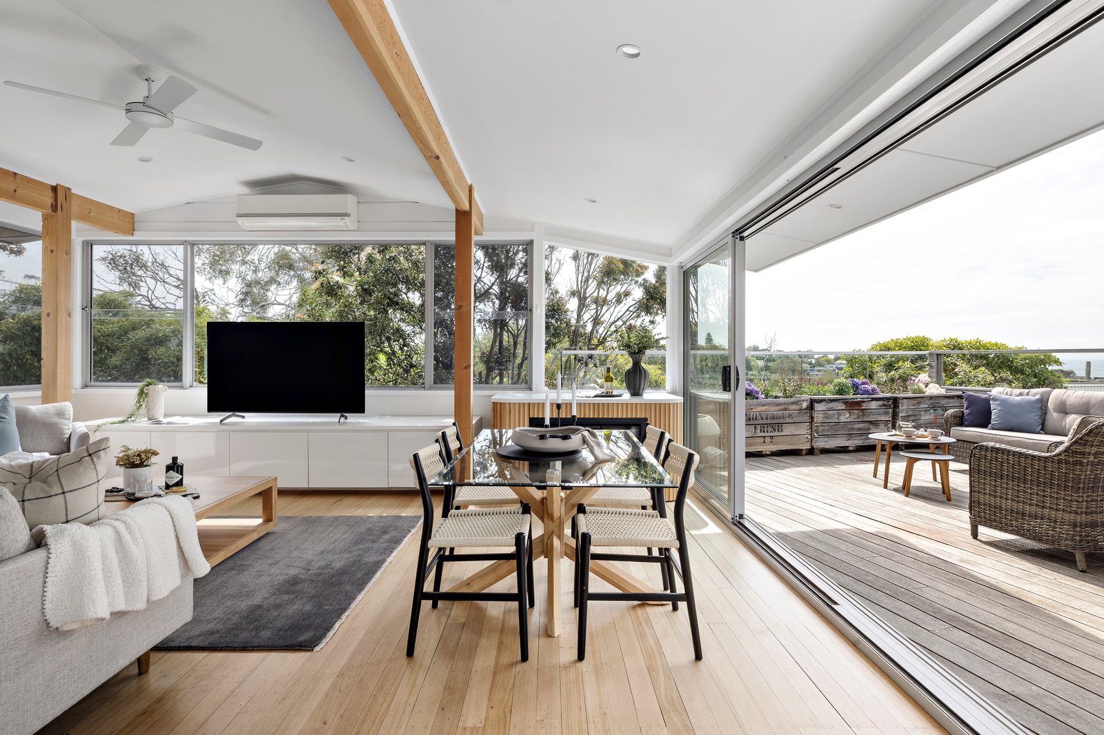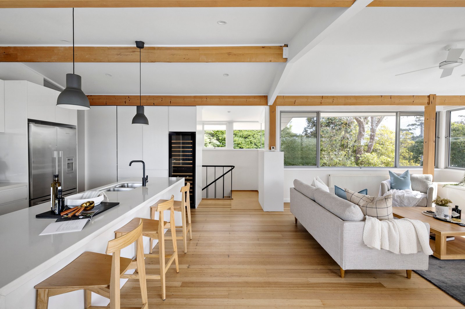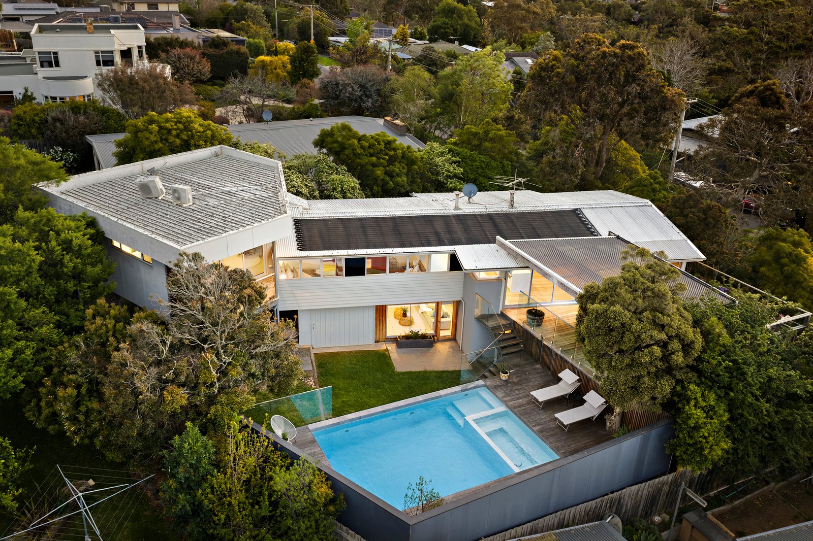 Oriented to embrace elevated north-facing Bay and CBD skyline vistas, this outstanding Frankston South home, originally designed by acclaimed mid-century architects Chancellor & Patrick, offered for only the second time in over 50 years. The home has been impressively renovated and updated to celebrate contemporary indoor/outdoor living and entertaining showcasing a luxe resort-style magnesium swimming pool and spa by 2025 Australian Pool Builder of the Year Laguna Pools. Positioned on 709-square-metres* within the coveted Frankston High School zone, the home offers private, secluded living amongst the treetops with three light-filled bedrooms and three-bathrooms this family home is idyllically located close to the Sweetwater Creek Nature reserve, just a five-minute stroll to Oliver’s Hill beach.