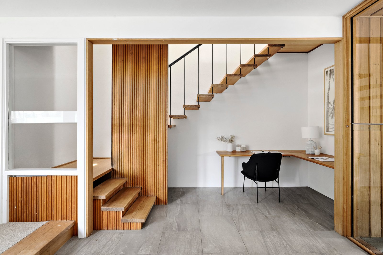 Additional features include a gas log fire heater in the main living area and hydronic heating throughout, split system heating/cooling, double-glazing, a single lock-up garage, undercover car parking for four vehicles, plus secure off-street parking, and there is an abundance of built-in storage throughout including the original modernist timber joinery, and pool equipment storage.