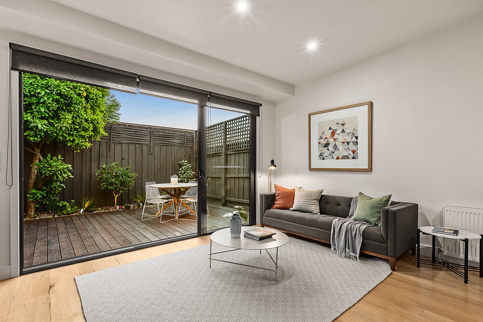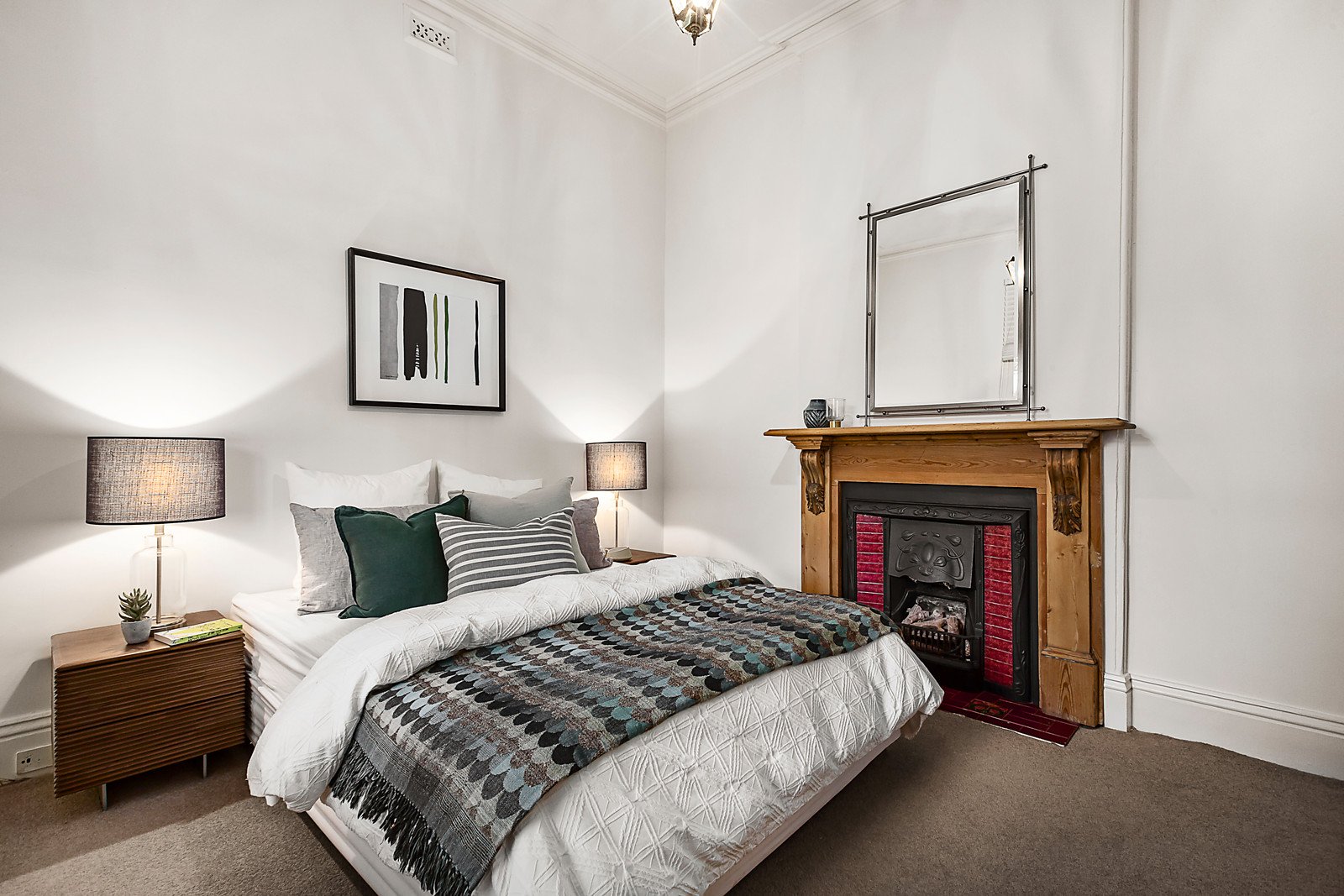 Traditional high ceilings and timber floors flow through the arched hall to a gorgeous bedroom with fireplace, a second double bedroom with fireplace and built in robes and a chic bathroom. The timber floors continue through the light-filled, open plan living and dining room with a modern kitchen boasting timber benches and induction cooktop. Stacking glass sliders open the living area to a captivating private decked courtyard, ideal for al fresco dining and with a gate to the side pedestrian lane. Ready to move in now, it includes hydronic heating, RC/air-conditioner, Euro-laundry and irrigation.