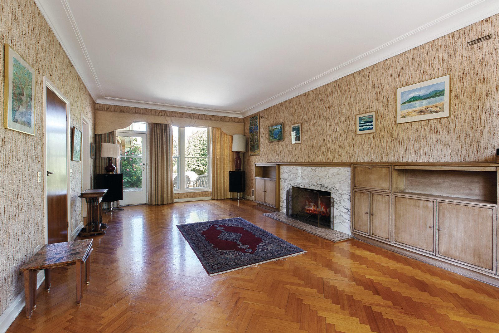 Beautifully proportioned throughout, the entry foyer introduces a generous, light-filled sitting room with marble open fireplace and parquetry floors and second living room with open fireplace. The inviting dining room and large capable kitchen with casual dining area open to a private west-facing garden. The spacious main bedroom with en-suite and walk in robe is complemented by three fitted bedrooms and a bright bathroom.