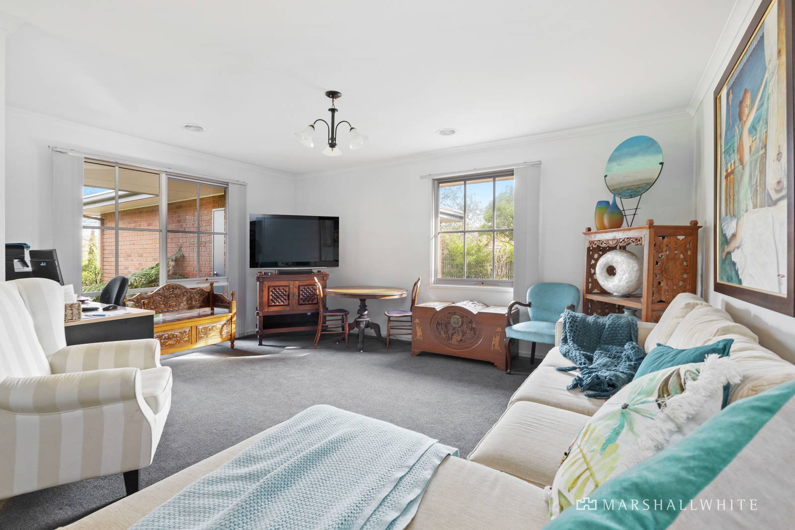 Ready for you to move in and enjoy or take to the next level with a modern makeover, this three-bedroom home is designed with family living in mind. Through the generous entry way, the first large living area is to the left and a sunny nook here accommodates a home office space.