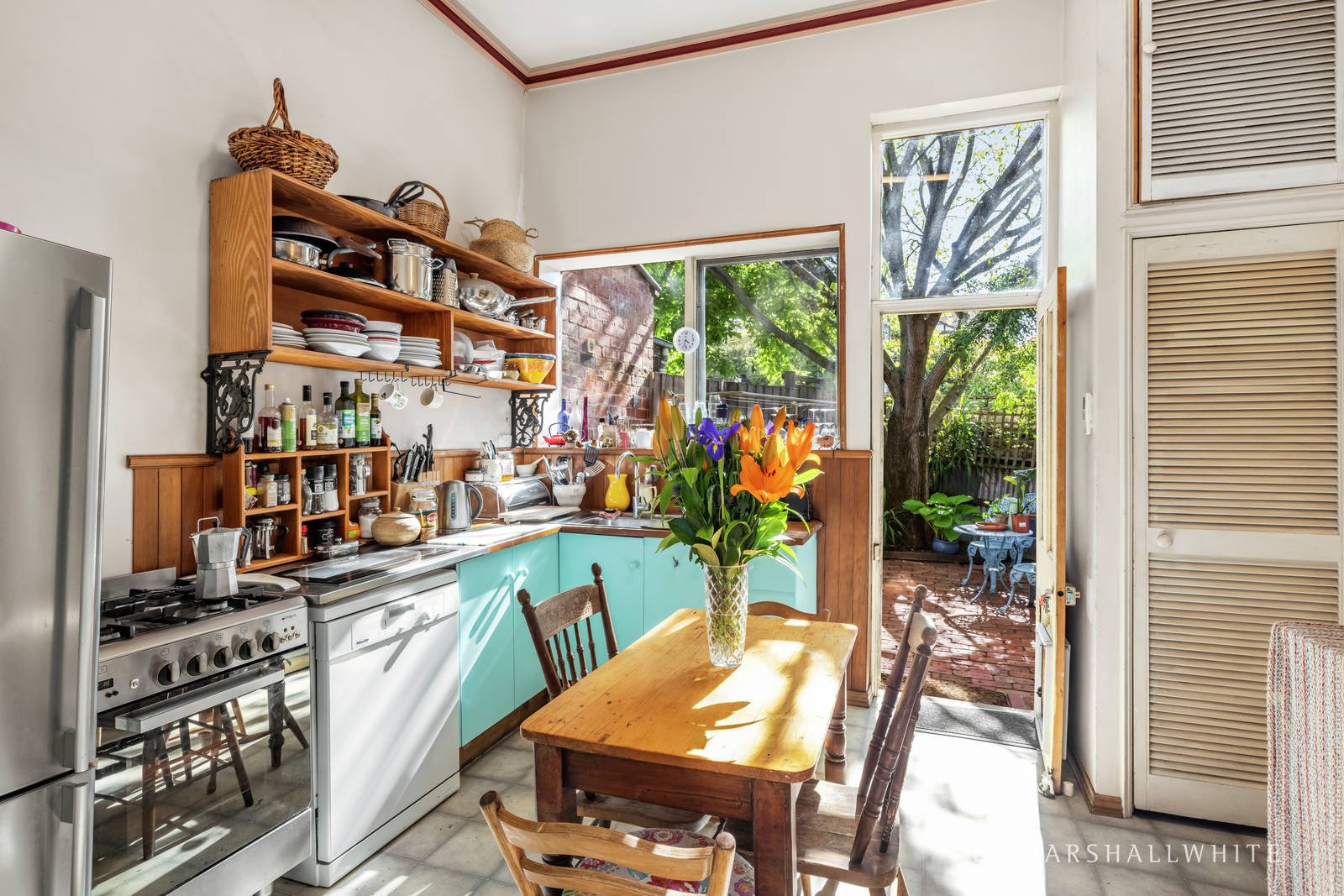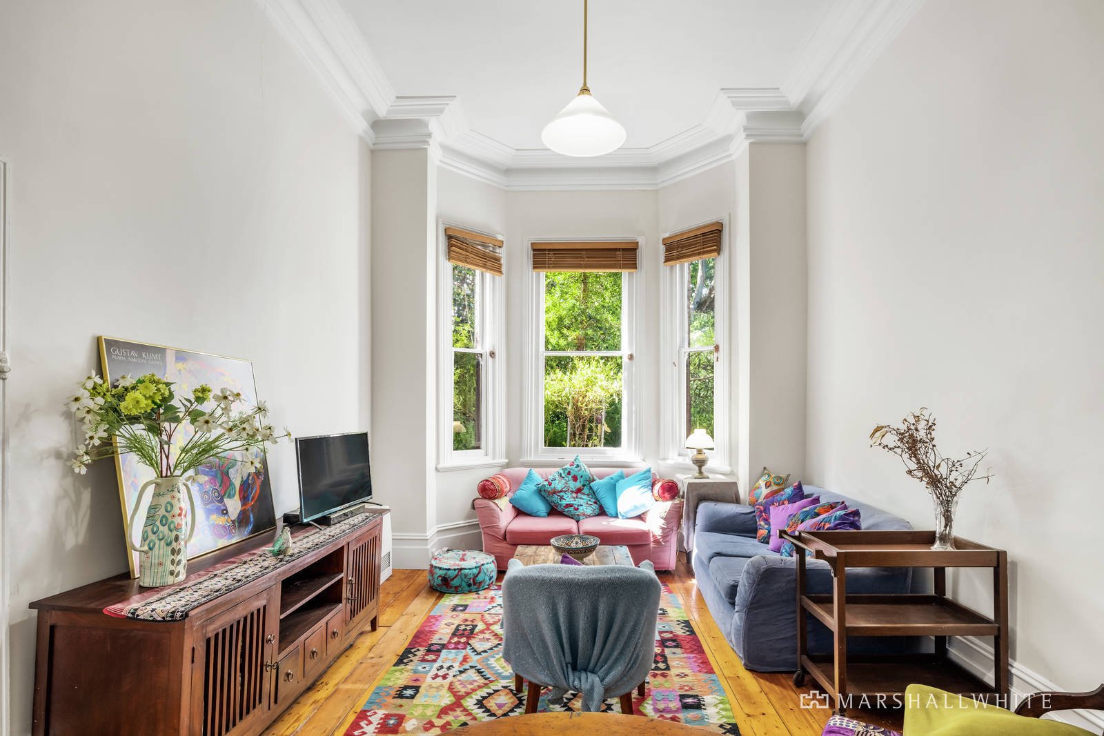 Currently presented as two separate residence's ideal to live in or rent out while considering the myriad of options. Ornate ceilings and Baltic pine floors highlight the period charm in the wide arched hall, gracious living room with a bay window and marble fireplace and two double bedrooms with a bathroom. The capable kitchen opens to a private northwest paved courtyard. The Baltic pine floors continue through the adjoining generous living room, two spacious bedrooms, bathroom and kitchen opening to a second paved courtyard.