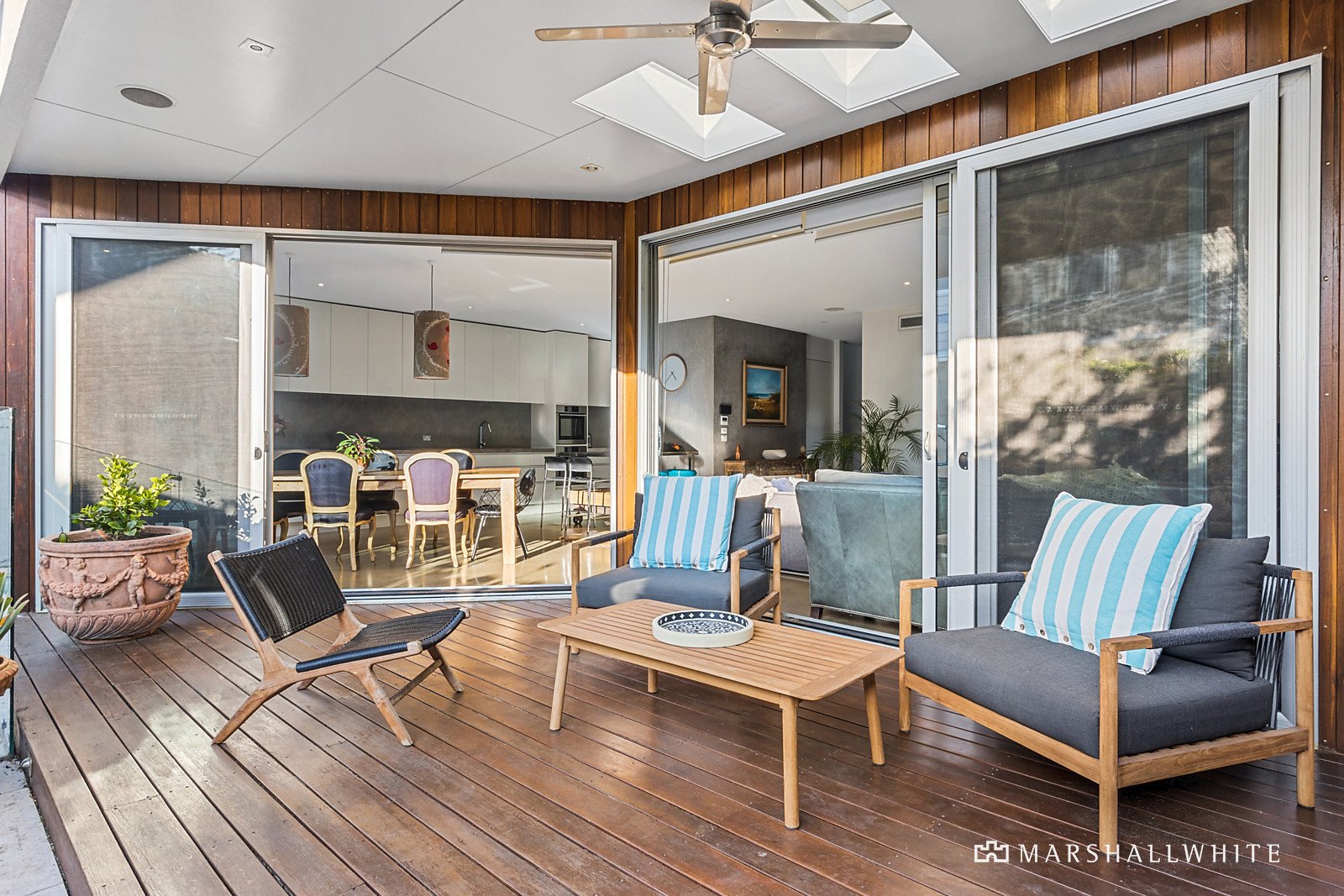 Additional features include double glazed windows throughout, solar hot water, integrated split system heating/cooling, sound system and an abundance of storage. Set on a minimal maintenance 318 square metre (approx.) block, the home is located in a tranquil beachside pocket of Mornington, where there is laneway access, via Nunns Reserve, directly to Fisherman's Beach and Lilo Cafe. Just minutes away is Mornington Main Street with its outstanding choice of shops, restaurants, and cafes.