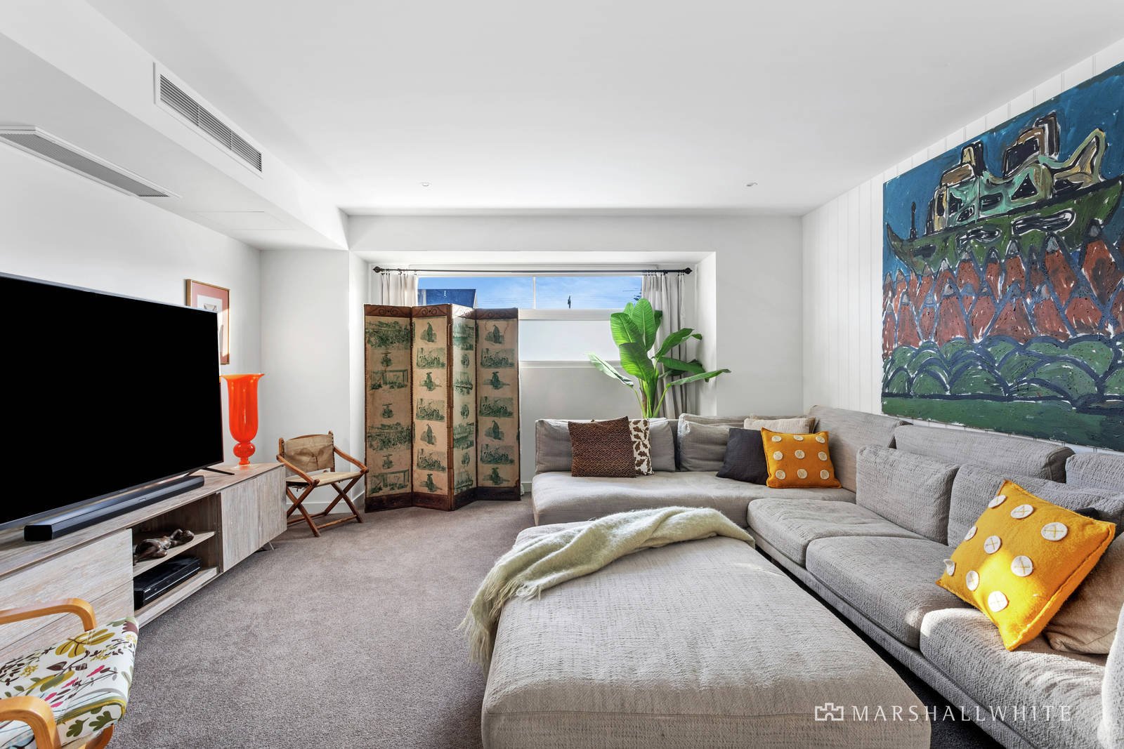 Upstairs the lavishness continues, with pure wool carpets, a spacious living area/retreat, two good-sized bedrooms with built-in robes, a stunning floor-to-ceiling terrazzo bathroom, and the opulent master suite with designer wallpaper backdrop, walk-in robe, and luxe terrazzo/marble ensuite with free-standing tub.