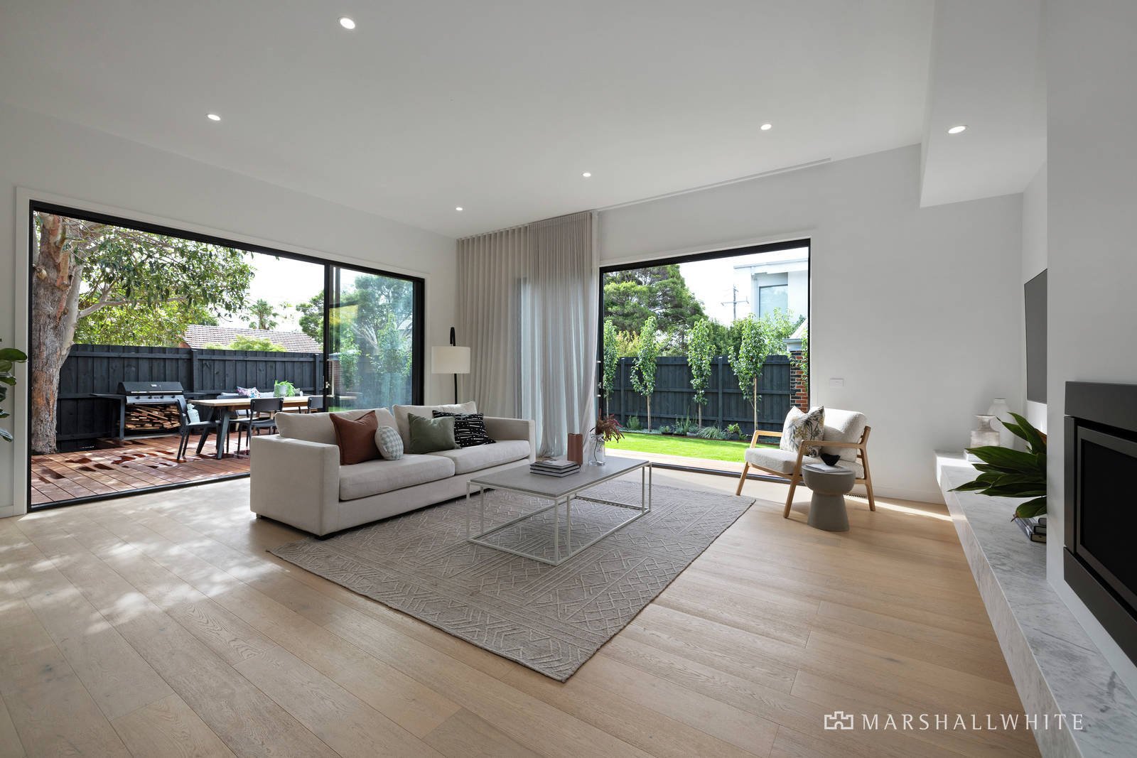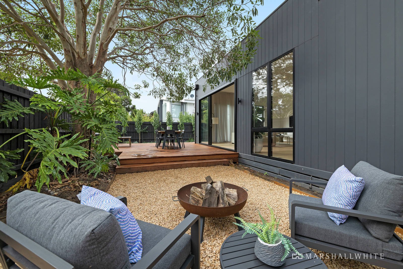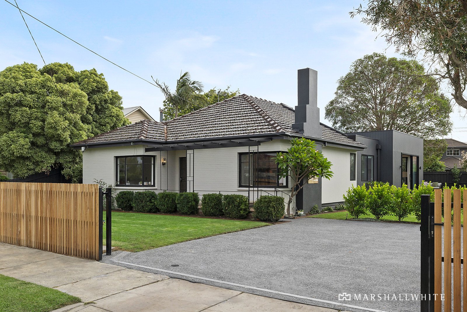 A stylish Hampton's style renovation showcases a spacious open plan living and dining domain saturated in north facing light, featuring trendy timber panelled cupboards, gas fireplace and an oversized marble island kitchen bench with breakfast bar. Features integrated appliances including two ovens, endless storage and a zoned pantry with appliance bench and study nook. Seamless indoor/outdoor entertaining opens through sliding doors to a capacious alfresco dining deck, pebbled courtyard with fire pit plus rear access. Four generous bedrooms comprise built in robes, main with walk in robe and double vanity ensuite, serviced by a modern main bathroom with freestanding bath. Includes ducted heating, split system cooling, spacious laundry, powder room and ample off street parking.