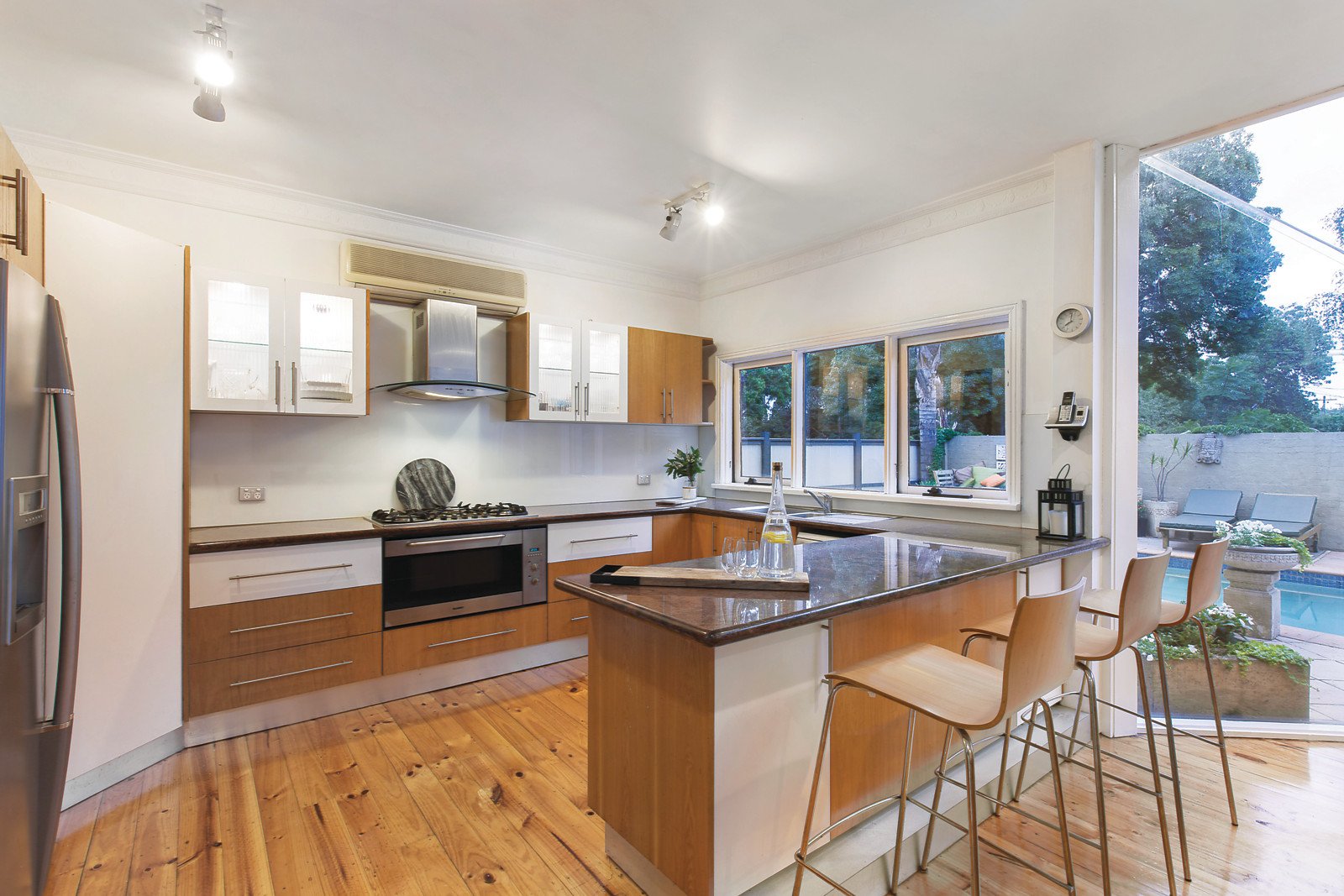 Generous proportions and period charm define the superbly proportioned sitting room and adjacent study. Year round natural light streams through the expansive living and dining room with a gourmet granite kitchen opening to the private northwest garden and picturesque solar-heated pool. Exceptionally spacious family accommodation upstairs comprises four double bedrooms with built in robes, a study nook and stylish family bathroom.