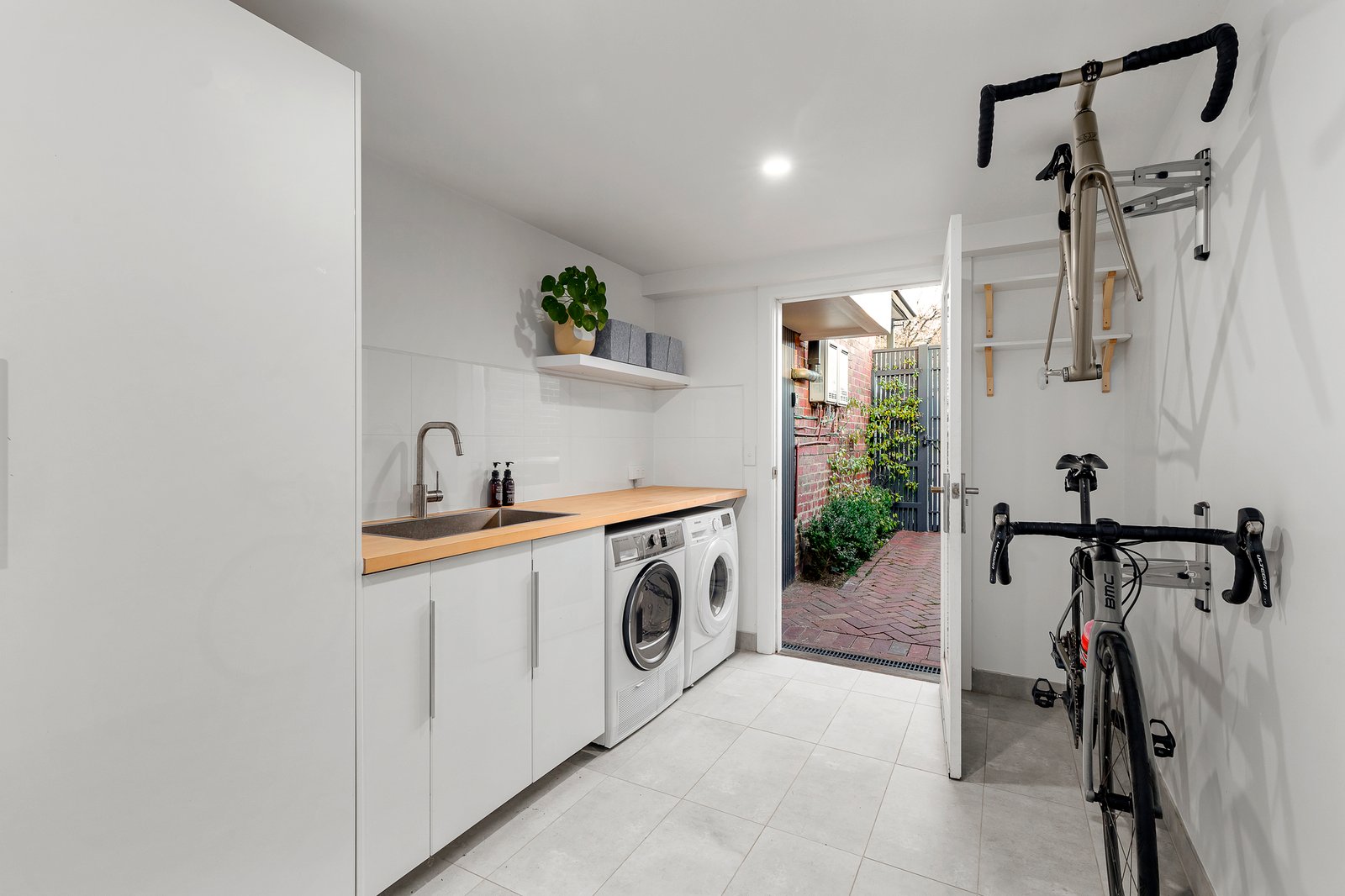 Also highly considered is the home’s liveability amenity, which includes a work-from-home space, a large laundry/mud room with space for bikes and sports equipment, an exterior side wall shed, and under-stair storage. Additional features include gas ducted heating, air-conditioning, a security alarm, a Tesla charger, and off-street parking for three cars including a private rear car parking space and access gate.