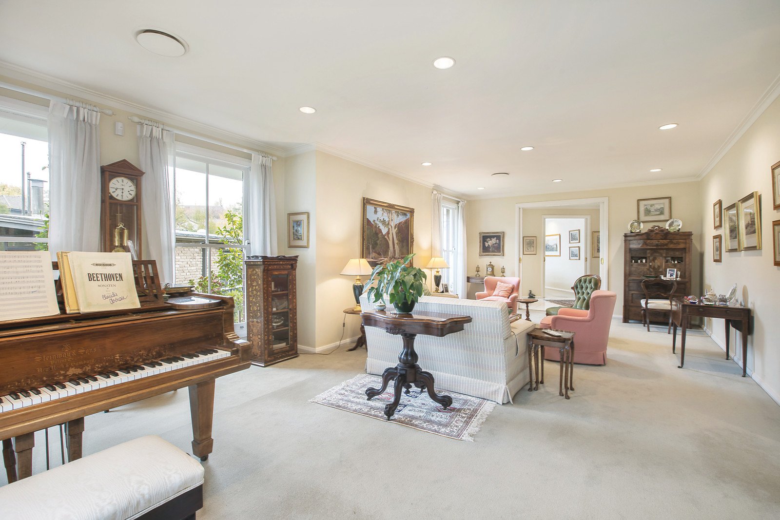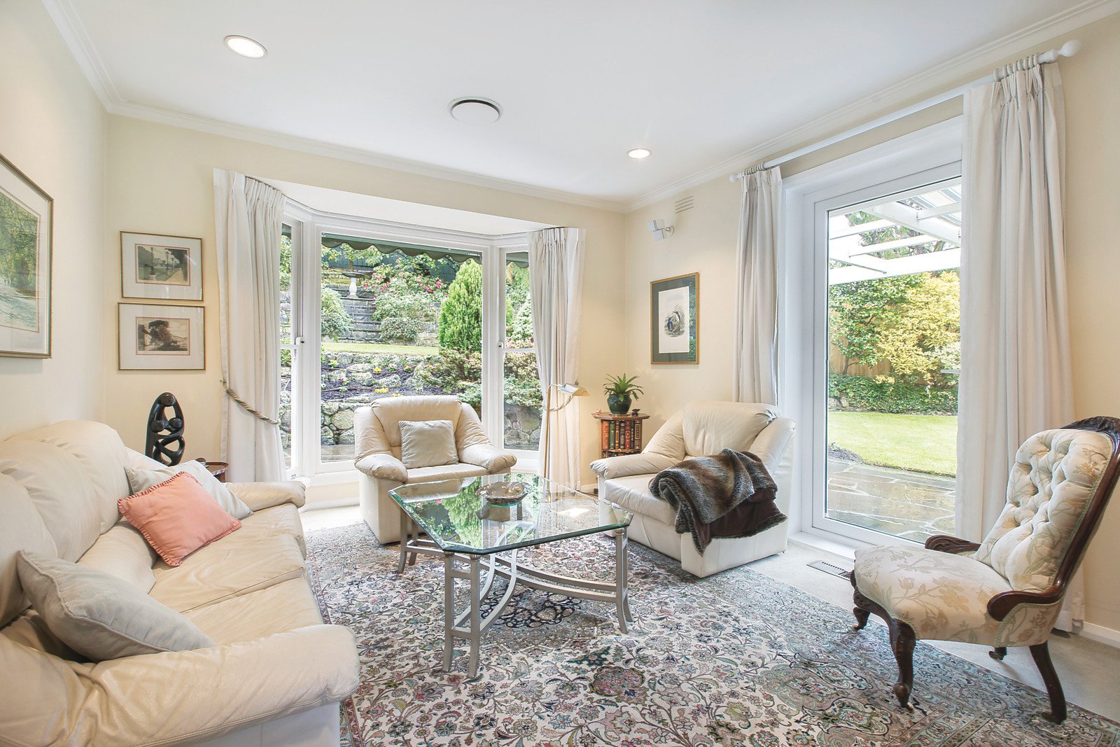 Designed to enjoy glorious garden outlooks throughout, the wide central foyer introduces an elegant formal dining room and magnificent sitting room. The gourmet Miele and stone kitchen with casual dining area and an inviting living room open out to the private north garden with paved entertaining terrace. A beautiful double bedroom with walk in robe and en-suite, three additional bedrooms with built in robes and a bathroom are downstairs while a parent's retreat upstairs comprises a generous double bedroom with built in robe and stylish en-suite and a study.