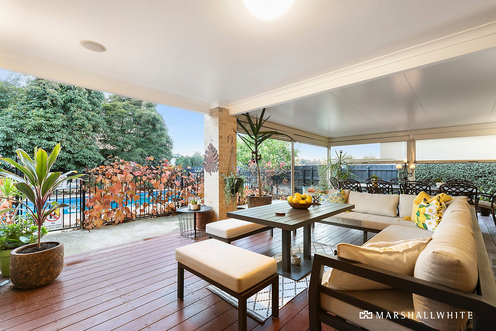 The resort-style backyard is another highlight. Its solar-heated 11x5m (approx.) pool and deluxe alfresco area with cafe blinds invite year-round gatherings, surrounded by attractive landscaping.