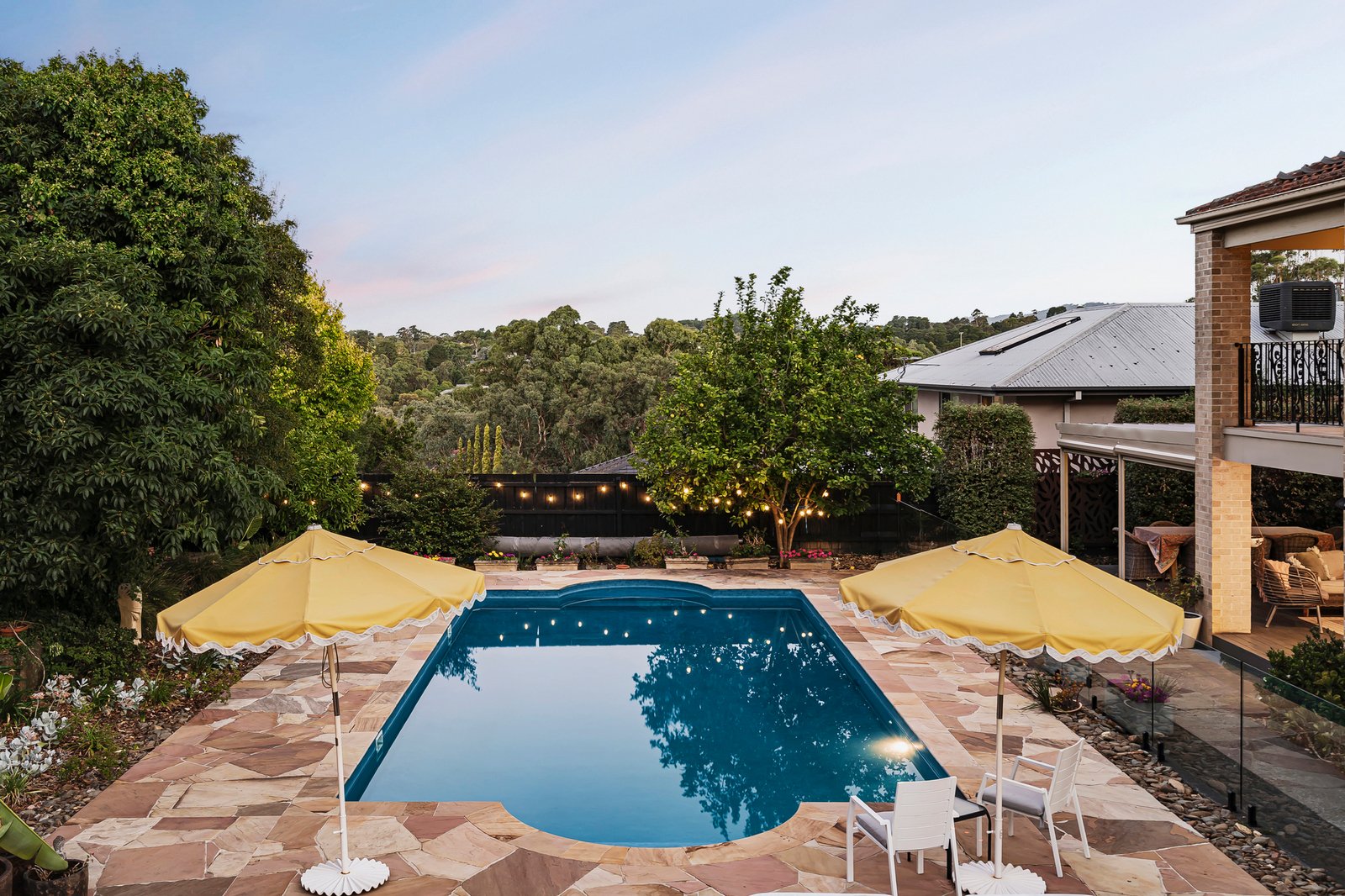 The resort-style backyard is another highlight. A solar-heated 11m x 5m (approx.) swimming pool and deluxe alfresco area with café blinds invite year-round gatherings, surrounded by attractive landscaping and Himalayan sandstone paving. A firepit zone, established gardens including a mature lemon tree, generous storage, separate renovated laundry, alarm system, CCTV, intercom entry, gas hot water and double garage further enhance both lifestyle and functionality.