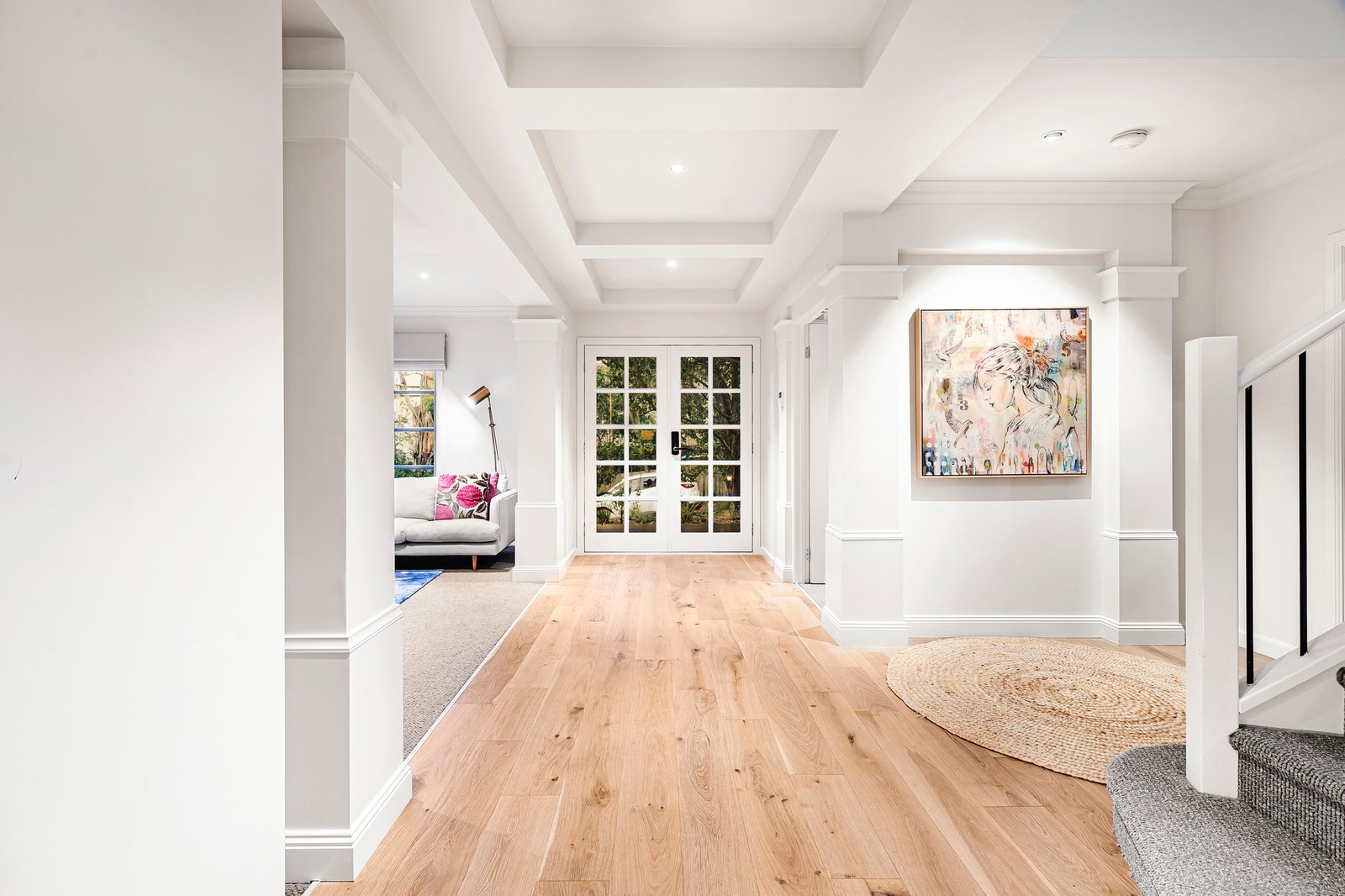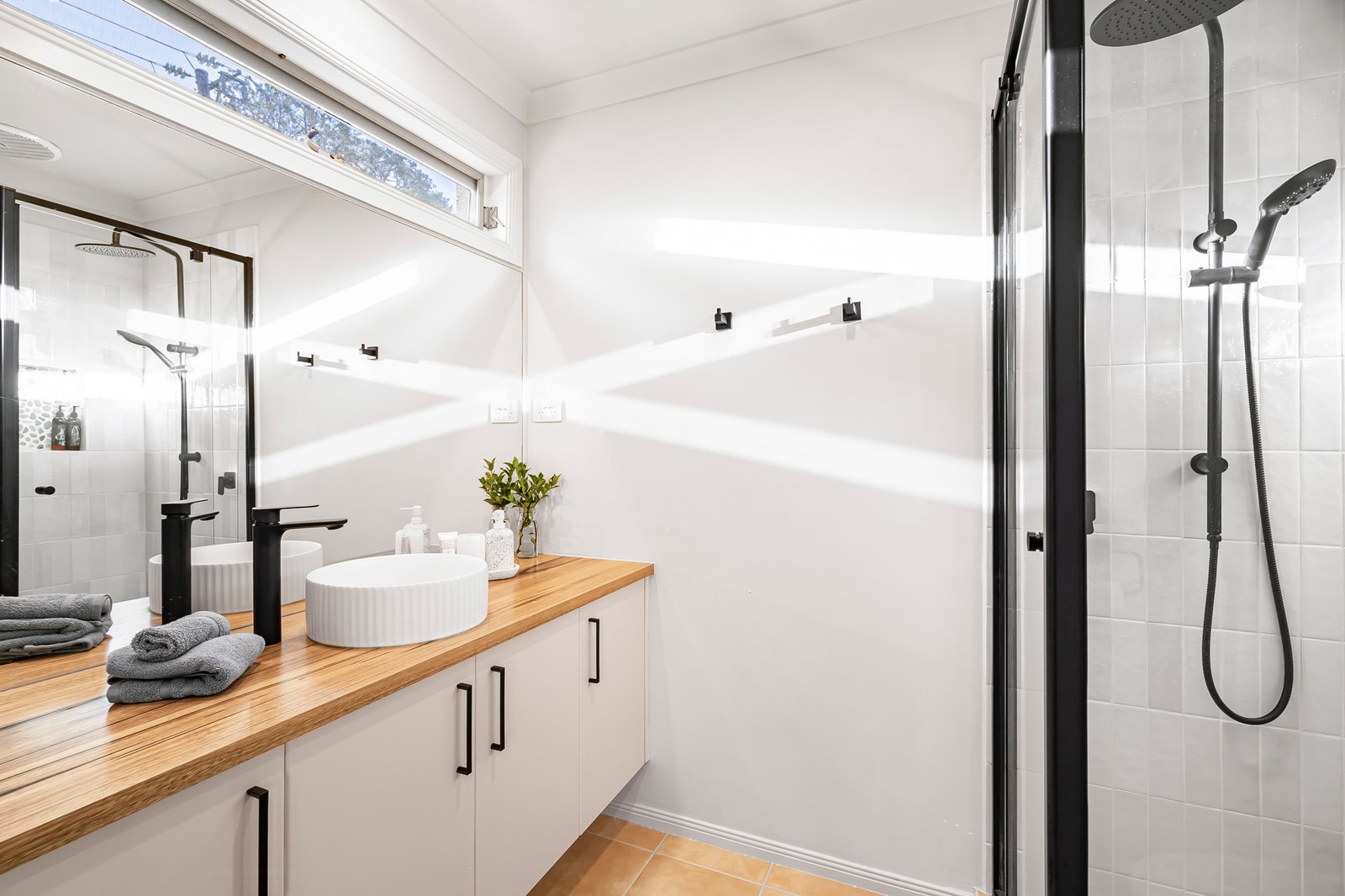 Accommodation is thoughtfully zoned upstairs, where four oversized bedrooms each feature walk-in robes and their own renovated ensuites, offering rare independence and comfort for family members or guests. The main bedroom is a standout, introduced by elegant French doors opening to a deep north-easterly balcony capturing beautiful morning light, complemented by an updated ensuite with freestanding tub, floating dual vanities and generous his-and-hers walk-in robes to create a luxurious private retreat.