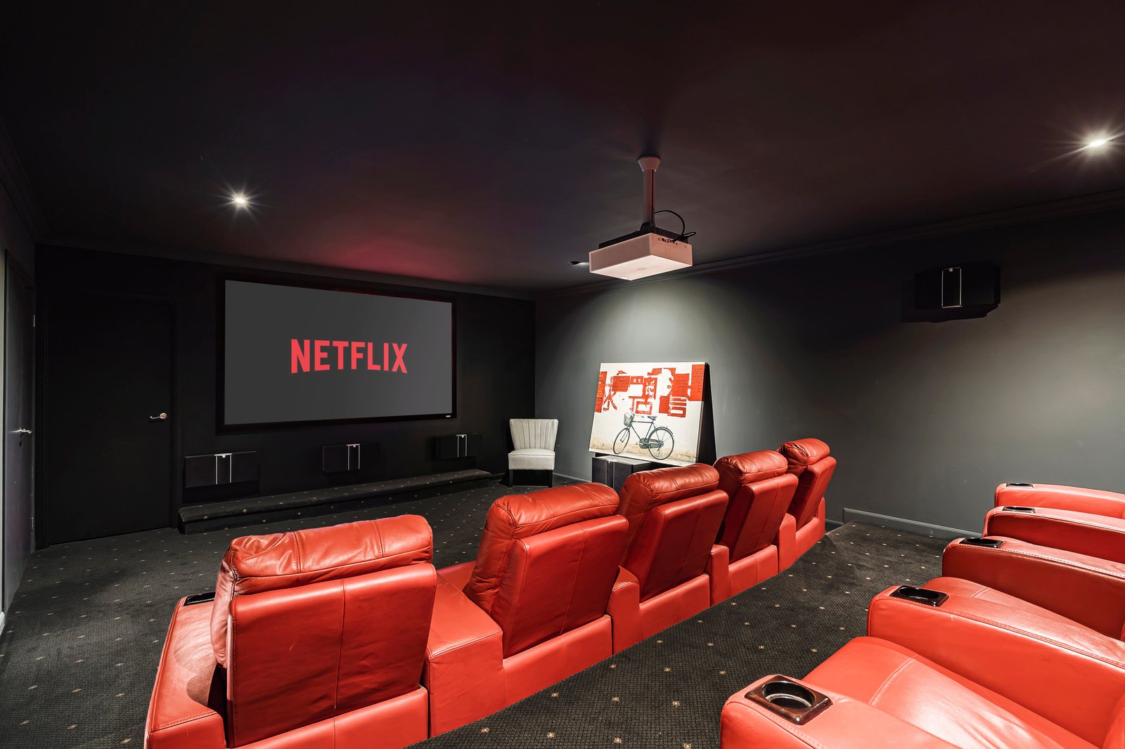 Natural light moves effortlessly through a series of elegant interiors, beginning with a refined formal lounge before unfolding into expansive open-plan living and dining anchored by a statement stone fireplace. Oak flooring, detailed cornices, plantation shutters and bespoke lighting enhance the warmth and sophistication throughout. A brand-new kitchen forms the heart of the home, appointed with a generous island bench, dual AEG ovens, ASKO five-burner gas cooktop, ASKO dishwasher, stone surfaces and elegant gold fittings, all complemented by excellent storage and seamless connection to the outdoors. Additional living areas include a spacious rumpus and bar zone, while a fully equipped cinema room delivers a true theatre experience with Dolby Surround Sound, projector and an impressive 100-inch screen.