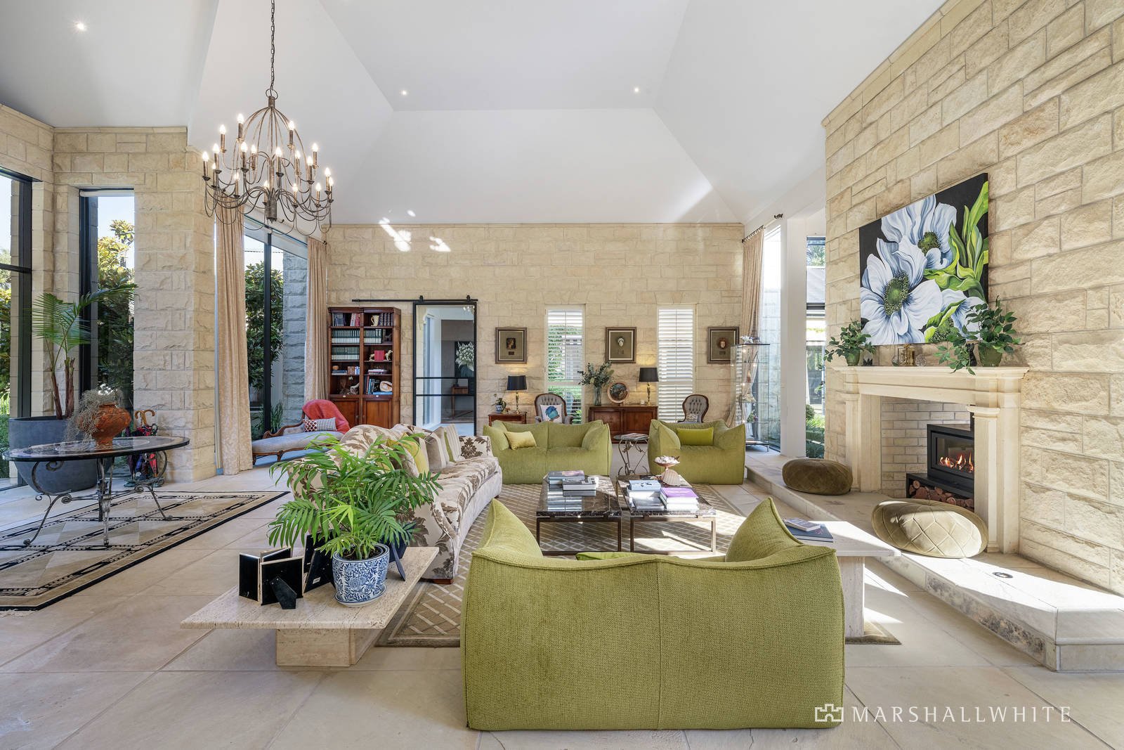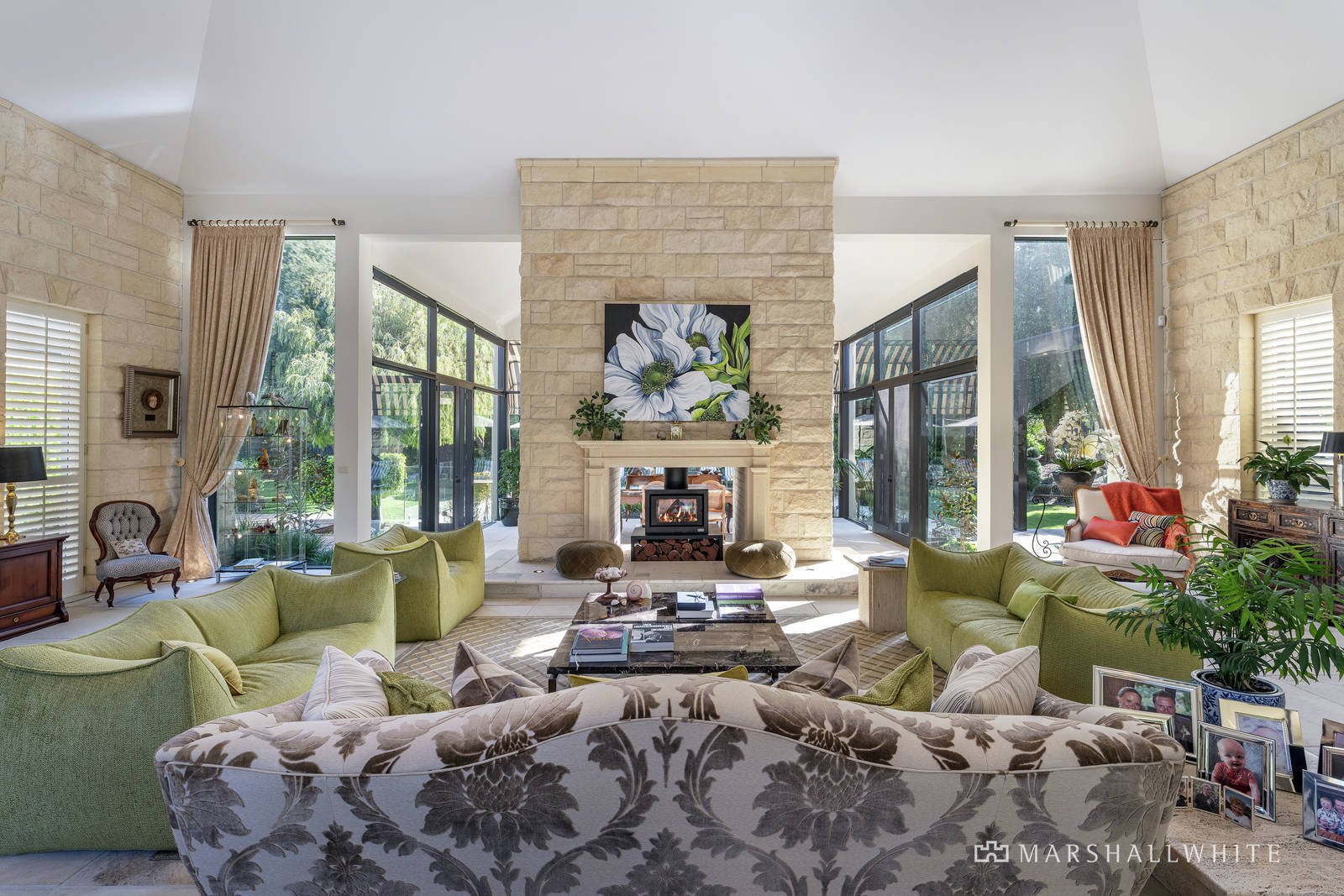 This single-level residence has been meticulously renovated, top to bottom, sparing no expense to update everything for modern day living. A grand entrance welcomes you to a magnificently appointed lounge/dining area surrounded by pristine, established gardens. The open plan kitchen and dining has a casual, relaxed feel with gas log open fireplace and is the ideal space to unwind with family and friends. This area opens to a well appointed loggia with all the required amenities for ultimate year-round entertaining.