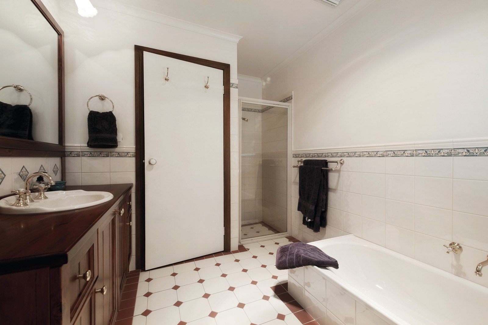 The exceptional family credentials of this substantial four bedroom residence are significantly complemented by its location, an exclusive cul-de-sac adjacent to the leafy expanses of a parkland reserve. Classical English style aesthetics introduce impressively proportioned spaces including an inviting formal living room where a picture window captures the park. A luxuriously large family room and dining domain accompanied by a French Provincial influenced kitchen and a flexible study zone lead to a garden backdrop defined by outdoor entertaining, designer decking and established lawns that surround a salt chlorinated solar heated swimming pool. Four bedrooms, one downstairs, are served by two bathrooms and include a romantic room among the tree-tops featuring a balcony with sublime sights of the adjacent park. Zoned heating and cooling enhance comfort. Double garaging and a carport contribute great convenience to a position that's zoned to Mount Waverley Secondary College plus additional schools, close proximity to Mount Waverley Village, transport routes and freeway access all within easy reach.