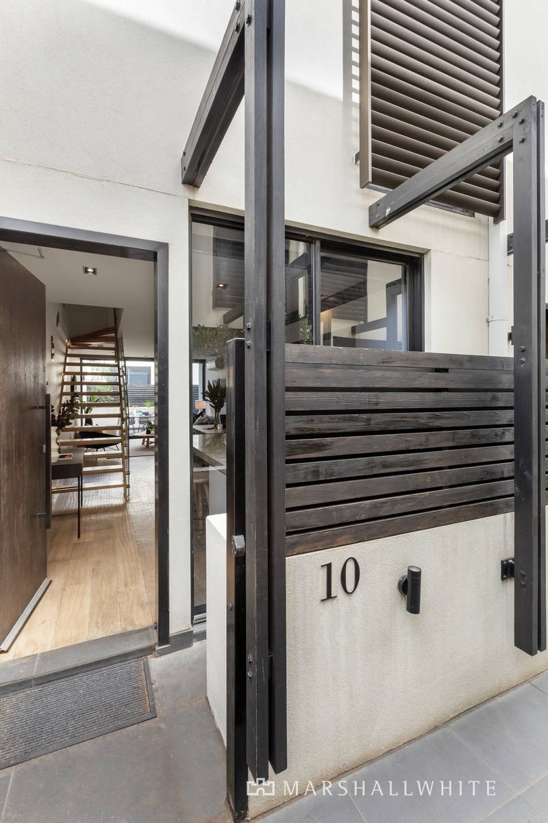 An impeccably savvy celebration of tri-level luxury and whisper-quiet sanctuary in the heart of Malvern East, this three bedroom executive townhouse is timelessly appealing and guaranteed to impress. Securely accessed, grandly elevated and set well back from the street, this is an evocative home that manages to retain privacy while creating an alluring indoor-outdoor connection. Instantly engaging with a kitchen of striking polished concrete benches and the very finest Miele appliances, an open-plan living area with Oak flooring and glass sliding doors at each end creates an open and airy flow. Suited to al fresco dining, a paved rear courtyard feels like an additional, outdoor, room. Upstairs, a pair of substantial bedrooms are appointed with built-in robe storage, while sharing access to a vogue bathroom and separate wc with a European laundry. Spectacularly, the home culminates on its top level with a remarkable master suite in which customised built-in robe storage is both aesthetically attractive and wonderfully functional, plus there is a private balcony with sweeping views and a five-star designer ensuite that reveals an inspired use of polished concrete that is themed to the kitchen. A list of thoughtful inclusions extends to a pair of secure basement parking spaces, video entry, split system heating and air conditioning. Walk easily to terrific local cafes along Malvern Rd, Wattletree Rd or Darling Rd, from this outstanding location near Hedgeley Dene Gardens, Gardiners Creek parkland and Darling Railway Station for effortless city-commuting.