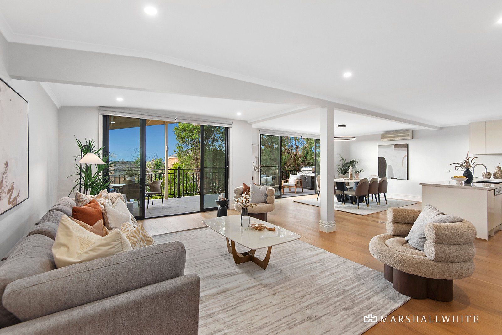 Majestically elevated on the high side of its prestigious, Balwyn High School-zoned street, this light-filled, four bedroom plus study, mid-century family classic has been tastefully renovated to merge a contemporary sense of sophistication with an open and airy floorplan. Brimming with northern light and seamlessly connected to four outdoor living areas, the home is beautifully connected to its surrounds while enjoying sweeping views to the city skyline.