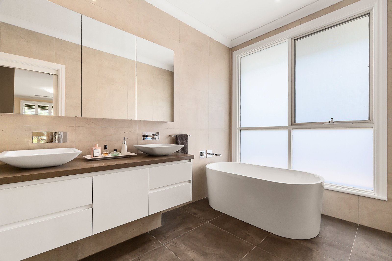 Behind a beautiful north-facing forecourt, the entrance hall introduces a gracious sitting room with open fire place and a formal dining room with built-in bar. Timber floors flow through the gourmet Smeg kitchen appointed with white stone benches, a casual meals area and a light-filled and spacious living room opening to a private garden. The serene main bedroom with walk-in- robe and designer ensuite with a freestanding bath and a home office are set apart from a children's wing comprising three bedrooms all with built-in robes and desks, a bathroom and expansive family/rumpus room opening to the leafy private garden.