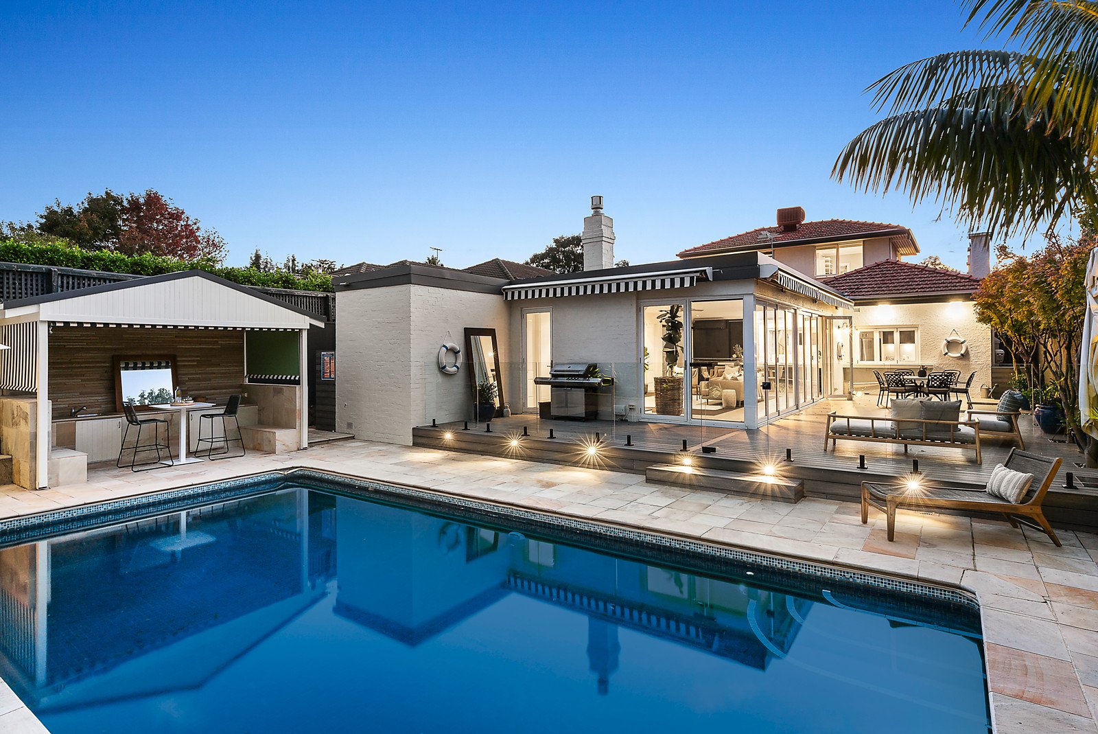 Prepare to fall in love with this magnificent entertainer in a quiet, leafy street, Brae Muir, is a character-filled 5 bedroom home, perfect for a growing family. Set behind a high wall with secure gated-entrance, the classically-designed garden stars a 50-year-old weeping elm and masses of rare yellow cliveas that create a welcoming fanfare each spring with their trumpet-like blooms. Let's not forget the cubby house with a fitted school like water tap for the kids, surrounded by lush green lawn. Built in the glamorous post-war period, the front of the house has been beautifully restored to show off its classic styling with art deco accents. Original features include leadlight windows, ornate ceiling roses, French doors, carved mantles and timber floors. A fresh white colour scheme runs throughout with the exception of the formal dining room/library with OFP, resplendent in deep indigo. The master bedroom has a walk-in dressing room, plus built-in robes and ensuite features custom-built Zuster cabinetry and 'liquorice marble' wall tiles. There is another bedroom, perfect for a nursery, and a powder room. Upstairs are two bedrooms, both with built-in robes, and separate shower and toilet. A fifth bedroom, in the rear section of the house, could be an ideal home office or a kids rumpus room. Cleverly designed for fuss-free entertaining, the natural stone kitchen spreads across the helm of the capacious family living and dining zone. The main section includes a freestanding Ilve 900mm cooker, integrated dishwasher and a servery to the outdoor dining area. The adjacent galley-section with large breakfast-bar doubles as a drinks/snacks servery away from the cooking during parties. A wall of bi-fold doors opens to the raised eco-deck that wraps around the house and stretches to the fence line, designed for easy entertaining and minimum maintenance. The expansive swimming pool is solar and gas-heated and the cabana is perfect for casual poolside dining shaded by decades old palm trees. There is also an additional enclosed side courtyard, and garden shed/workshop with access to the front with OSP for two vehicles. Outdoor tech includes motorised sensor-activated awnings, electronic sprinkler system and automated garden lighting. The house also includes separate laundry, ample storage including attic, ducted heating and split system A/C and CCTV security system. Located in the heart of Brighton and its most sought after drawcards, just a stroll to the beach and its famous bathing boxes, some of the most elite schools in Melbourne, Brighton Beach station and a choice of boutique shopping and dining options.