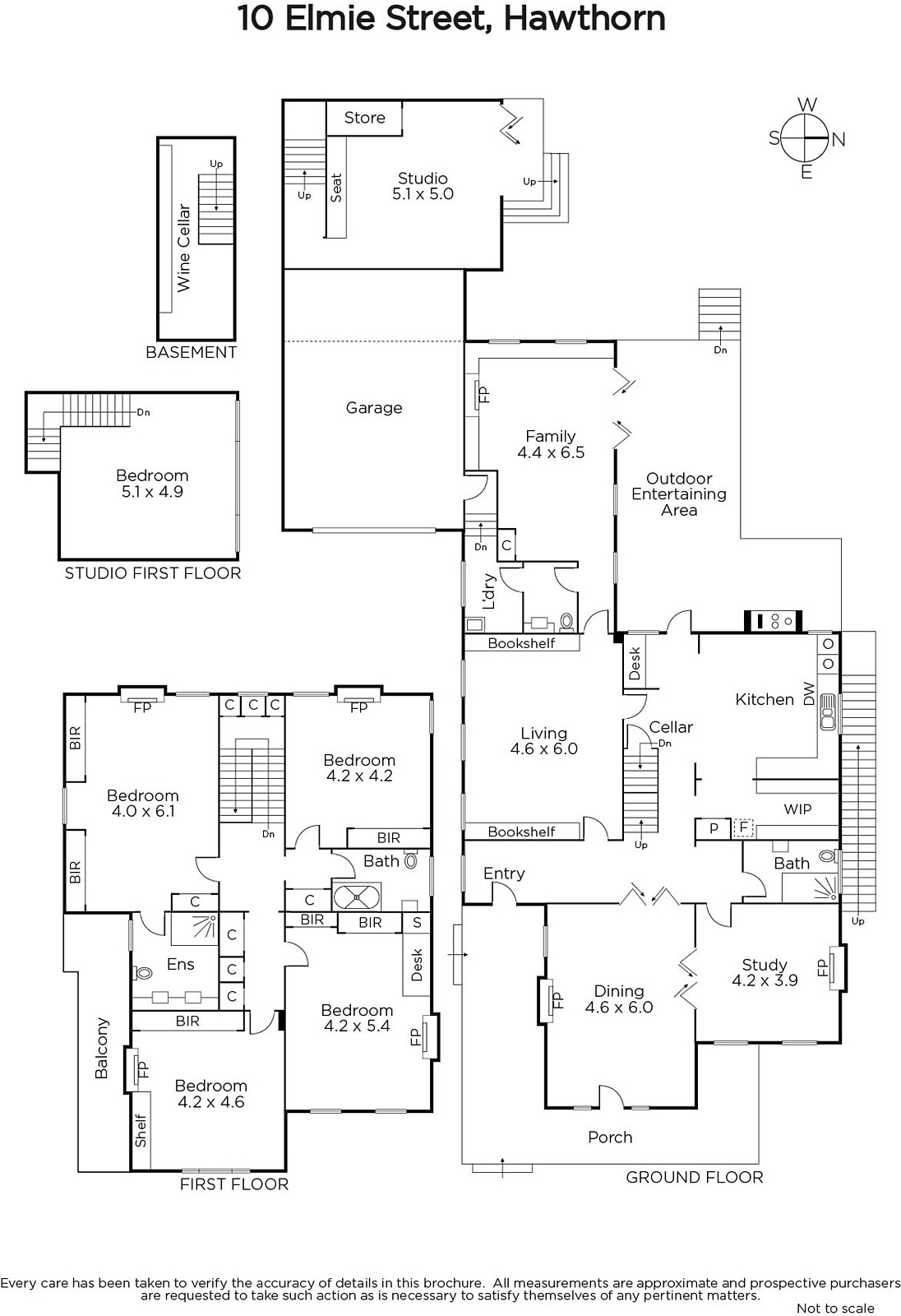 The gracious interior features a return verandah and a triple arched entrance hall flanked by a beautiful formal dining room, sitting room, study, downstairs bathroom and a cedar staircase leading to a second family bathroom plus four bedrooms with BIRs, main with ensuite and verandah access; whilst the two rear bedrooms have superb City skyline views. A generous family domain, perfect for entertaining in small intimate numbers or large groups includes a stylish marble kitchen/meals equipped with prestige Miele and Gaggenau appliances and adjacent butler's pantry plus a laundry powder room and living room all leading to a wide, northern verandah overlooking an azure blue pool and spa which is set in a private garden lined with ornamental trees and creepers. Other features of this truly impressive home include an external two-storey studio, rumpus room and additional guest bedroom or home office, alarm, OFPs, GLF (informal living room), ducted heating, R/C air conditioning (upstairs), cellar, remote gates to a double carport plus rear lane access.