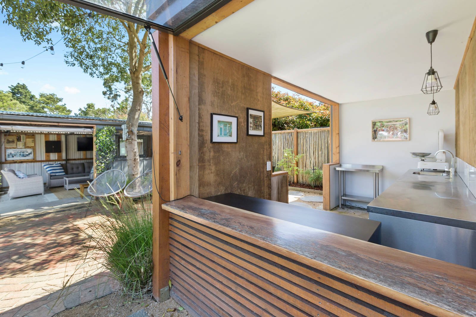 The rear garden offers great amenities including an external kitchen/bar, barbeque area and rustic covered outdoor entertaining cabana with wood heater. A tranquil water feature completes the relaxing ambience. Other features of this exceptional family home include scope for further future enhancement, ducted cooling and heating, gas wall heating, ample storage, rain water tank, garden sheds, double carport with a turning area and plenty of off-street parking.