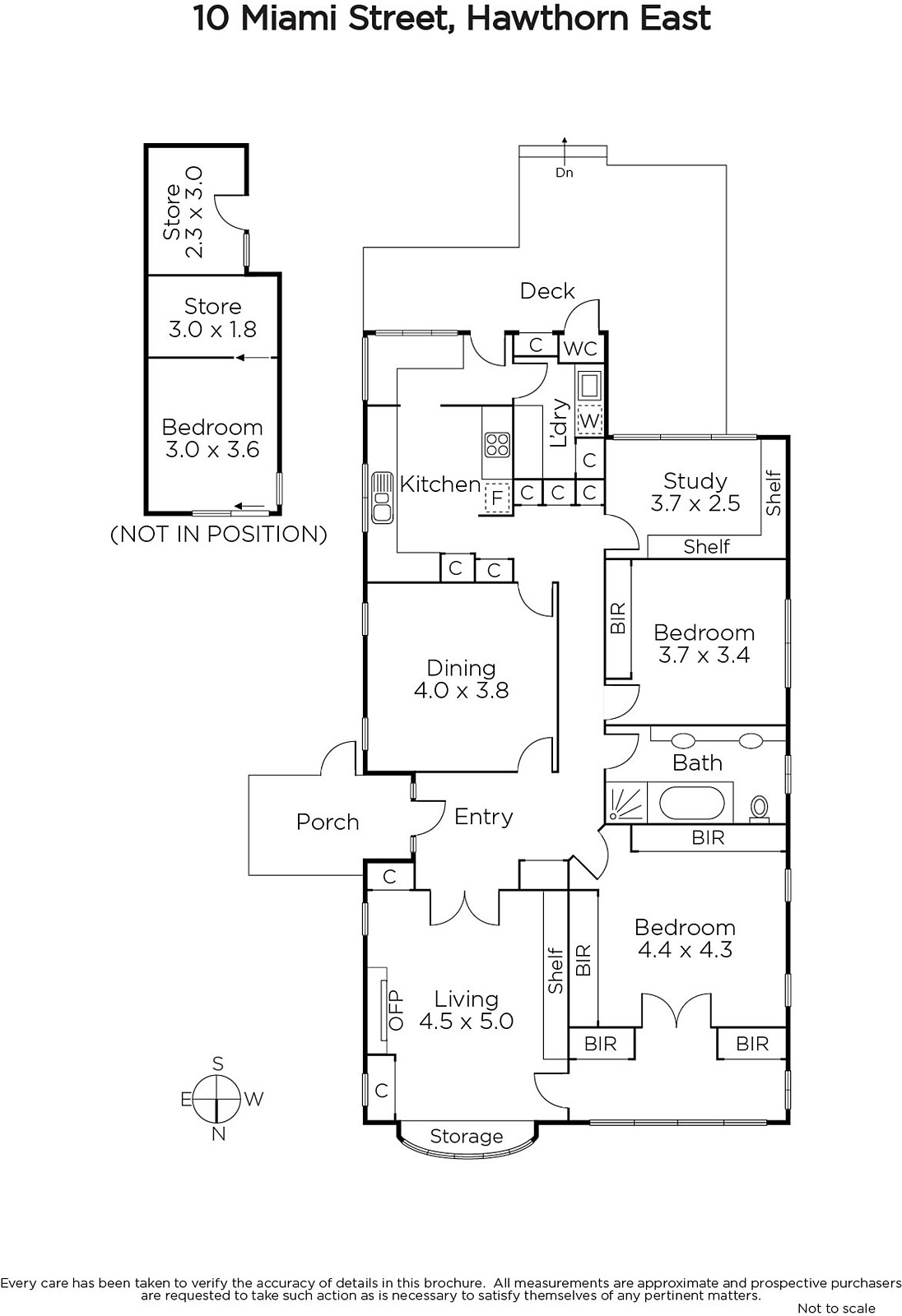 The flowing interior delivers an easy living environment highlighted by subtle period attributes, polished timber floors and smart Plantation Shutters complementing the contemporary decor. With accommodation comprising entrance hall opening to a sitting room with OFP and bay window, separate dining room, study, pristine family bathroom with spa bath and two bedrooms; main with dressing room plus a third external bedroom, home office or studio and WC. A sleek kitchen equipped with Euro stainless steel appliances, CaesarStone benches, breakfast nook and adjacent laundry flows to a wide deck gently shaded by a magnificent Magnolia tree and overlooking a deep rear landscaped garden.