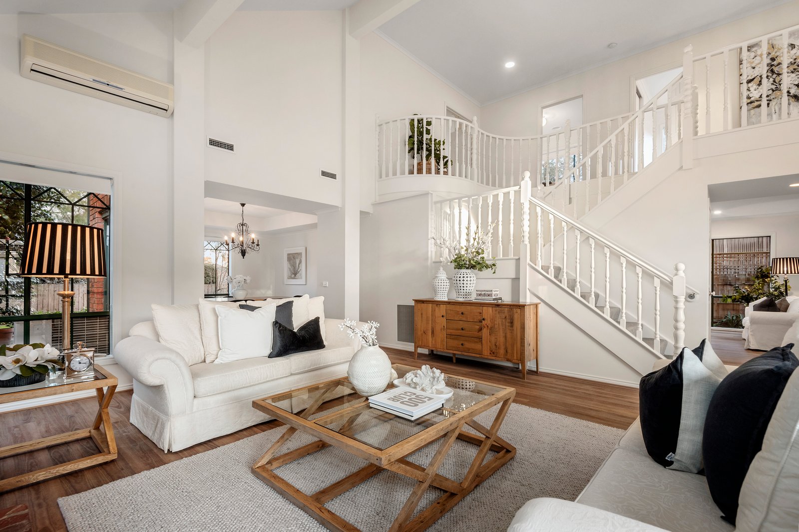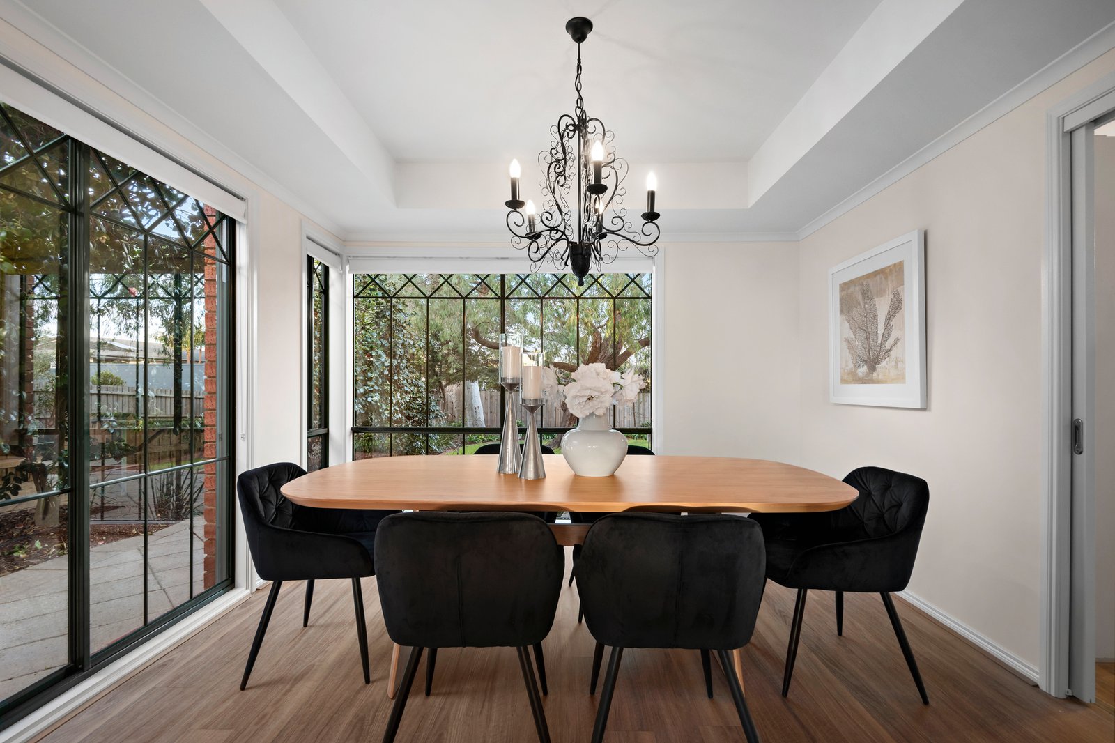 As you enter, you’ll be greeted by a breathtaking cathedral ceiling and an elegant curved staircase, setting the tone for the luxurious yet inviting atmosphere that defines this residence. This light-filled double-storey home, recently enhanced with timber-hybrid flooring and quality carpets, offers a versatile layout for a growing family. Perfectly positioned, the central stone kitchen connects to both formal and informal living and dining zones, and looks out over the private rear garden. The large butler’s pantry with fridge space, prep area, and appliance benches provides all you need for memorable gatherings. Relax around the Jetmaster wood fireplace in the main living area, perfect for cozy winter evenings, or entertaining guests in style.