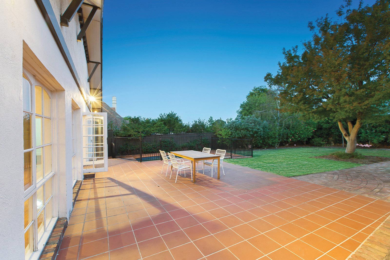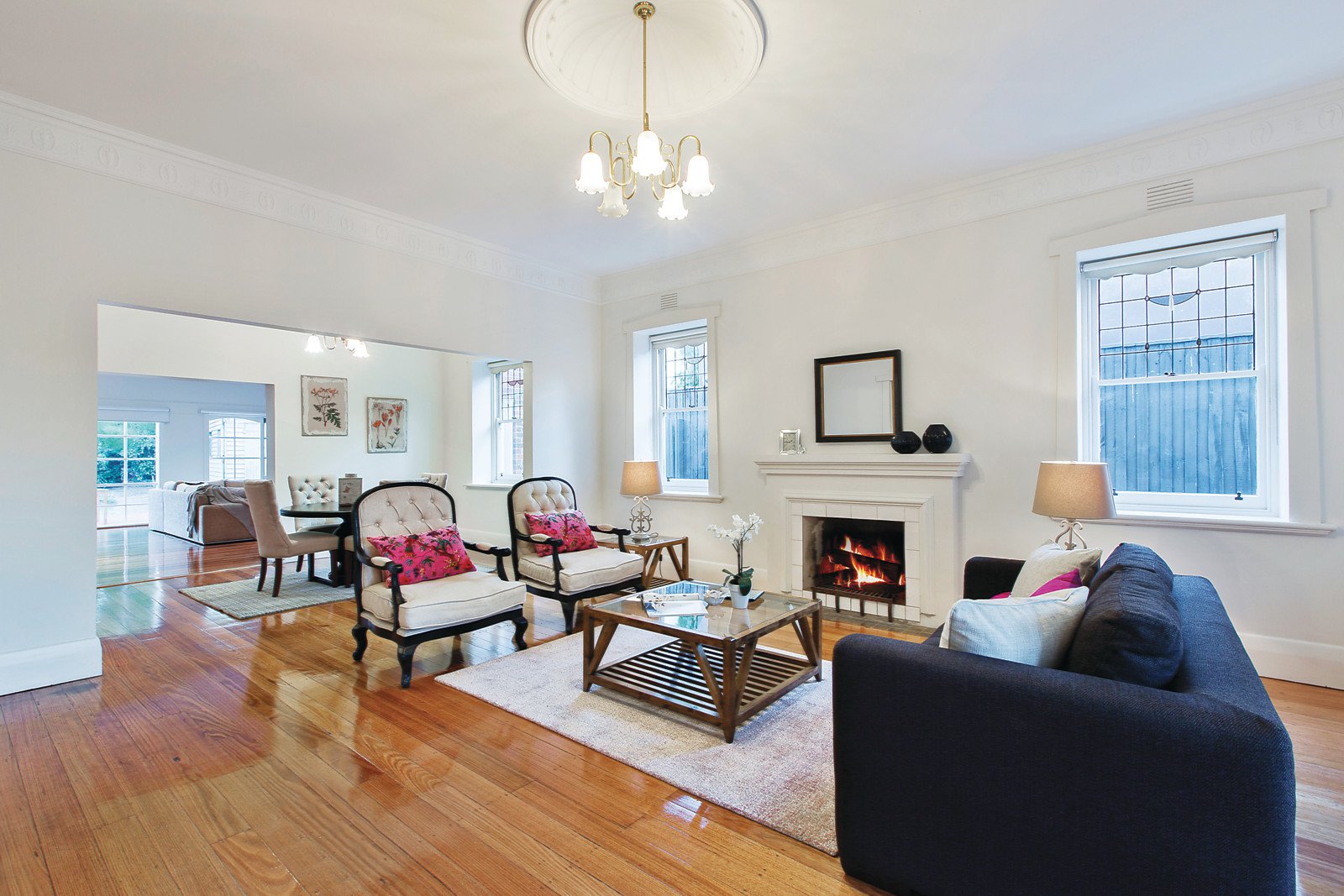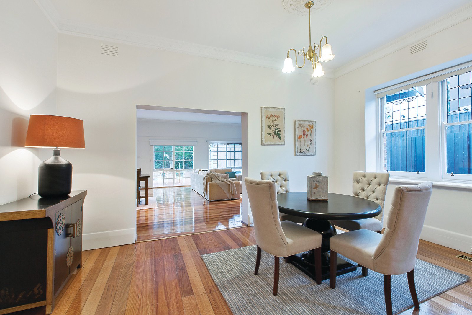 Recently refurbished and up-dated the home offers period characteristics and proportions typical of its era. The current accommodation includes four bedrooms, or three plus a study or additional living room, black & white tiled bathroom, new central kitchen with CaesarStone bench-tops and stainless steel appliances and adjacent laundry; plus a formal sitting room with OFP and adjoining dining room leading to an expansive informal living and dining room providing a generous area for entertaining large numbers indoors. A terracotta paved alfresco area overlooks a solar-heated pool and large rear garden with original garage/storage.