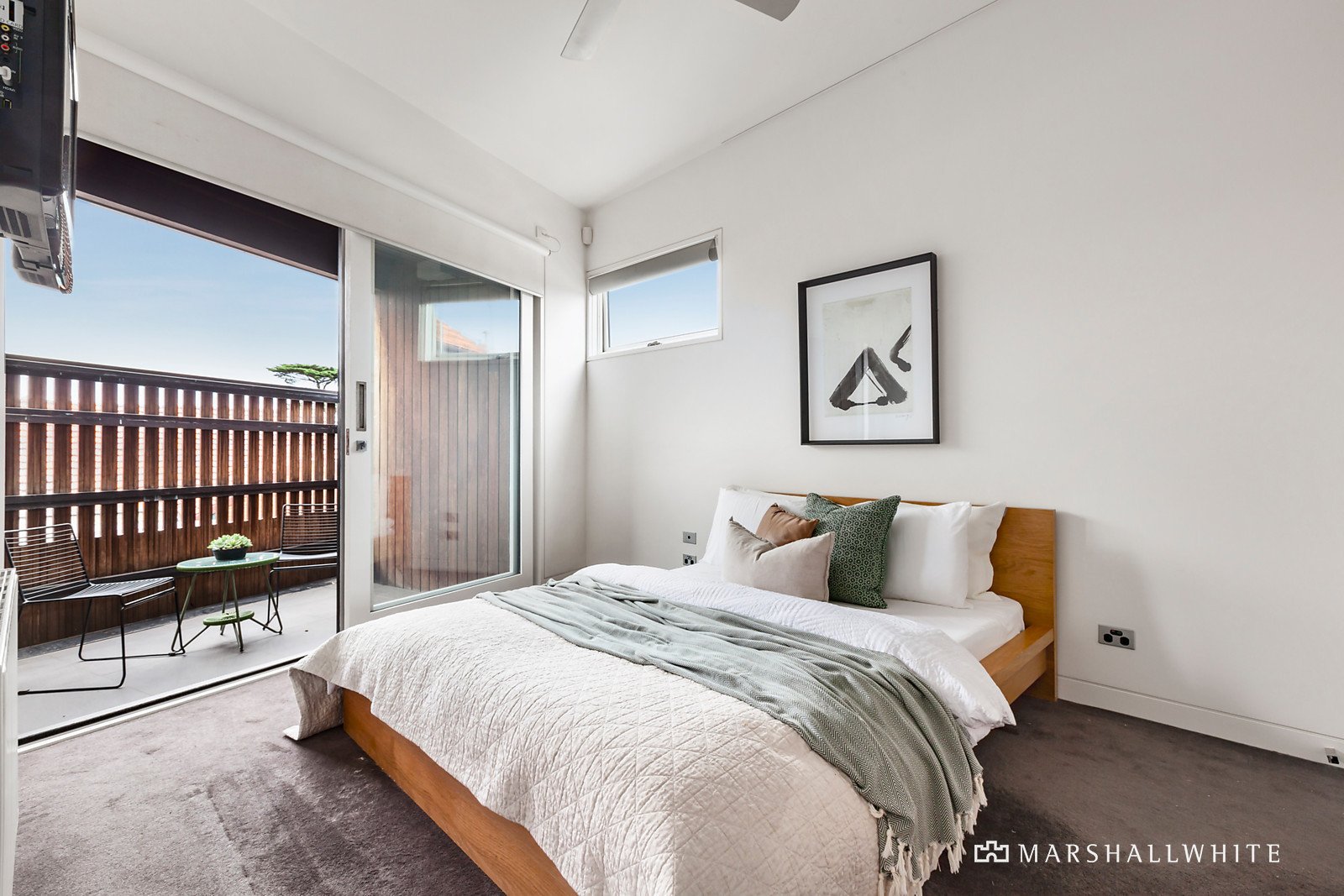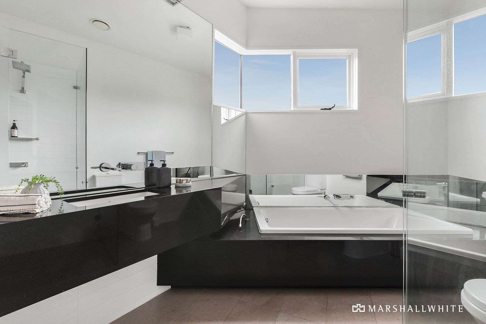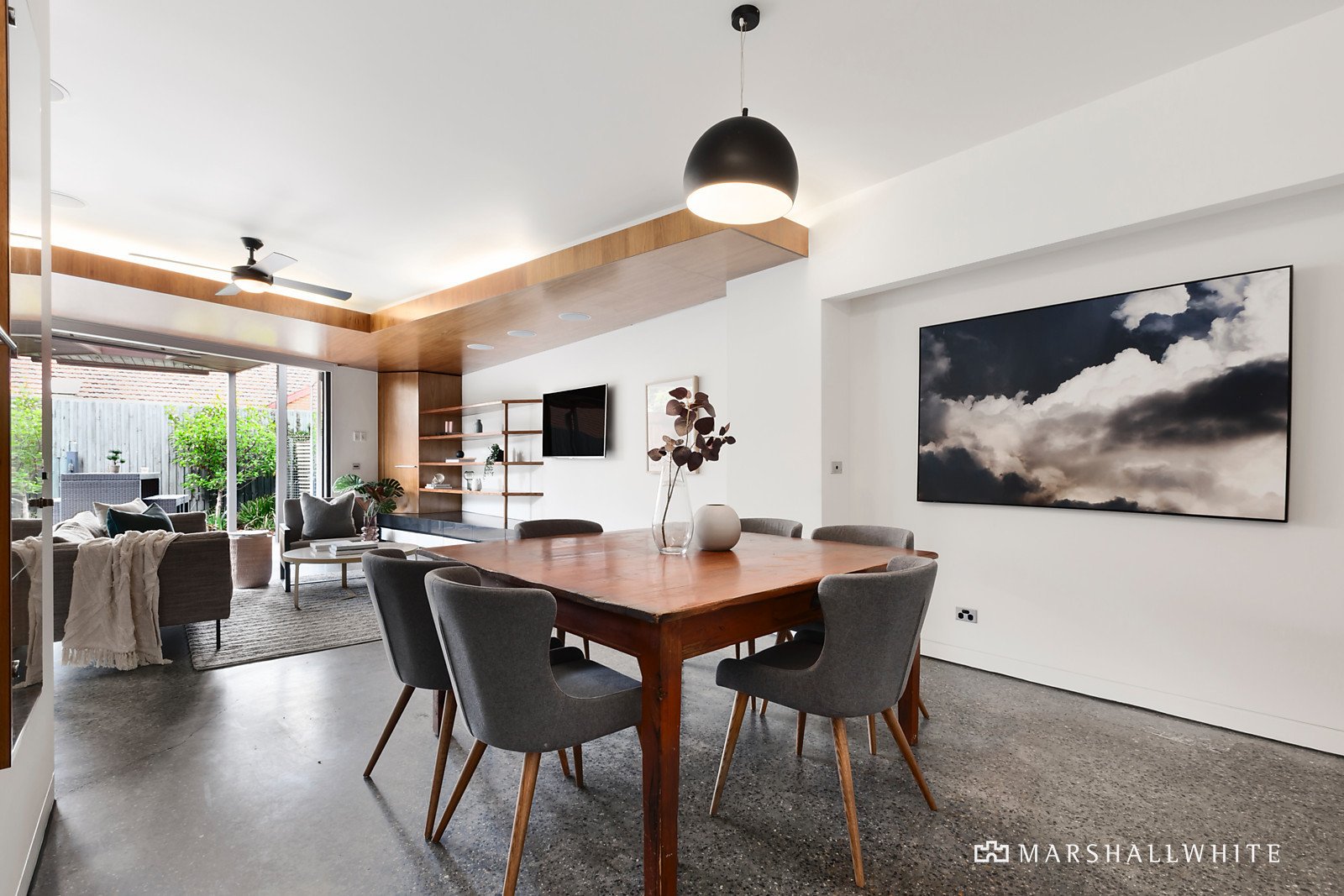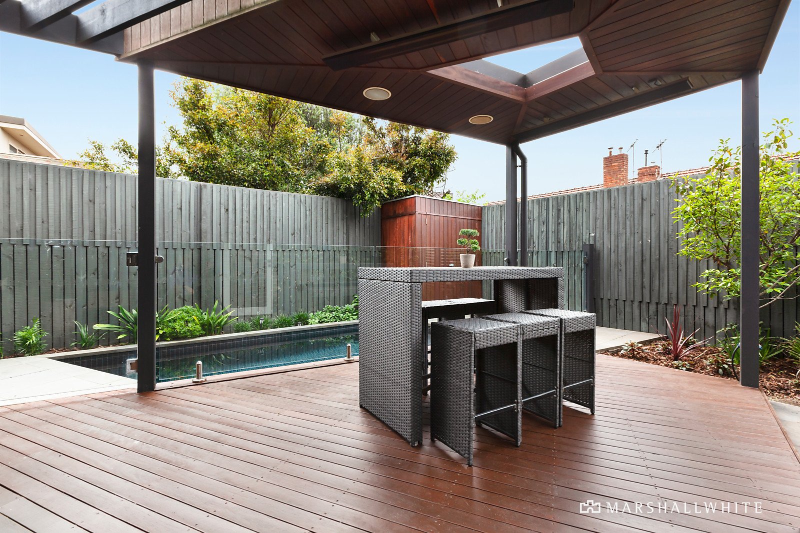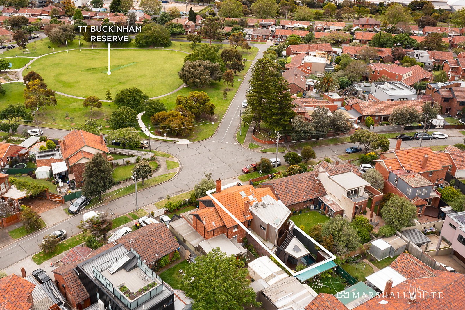 A sensational architect designed renovation and extension has totally transformed this brick residence into an ultra-stylish, exceptionally spacious and lavishly appointed family oasis directly opposite T.T. Buckingham Reserve and literally minutes to the beach. Polished concrete floors, high ceilings and bespoke joinery define the generous entrance foyer, gourmet kitchen boasting granite benches and Bosch appliances and the expansive living and dining room featuring evocative timber ceilings. Bi-fold doors extend the living spaces out to a private landscaped garden with bluestone terraces, a plunge pool and fabulous covered al fresco dining deck with outdoor heaters, ideal for year-round outdoor entertaining. Upstairs is the main bedroom with walk in robe, deluxe en suite with bath, remote blinds and private covered balcony, two additional bedrooms and a stylish bathroom. Downstairs alternate main bedroom with built in robe and a designer en suite along with a spacious home office conveniently with its own street access. Impeccably appointed with an alarm, video intercom, hydronic heating, zoned RC/air-conditioning, ceiling fans, powder-room, Euro-laundry, water tank, shed and off street parking. Land size: 267sqm