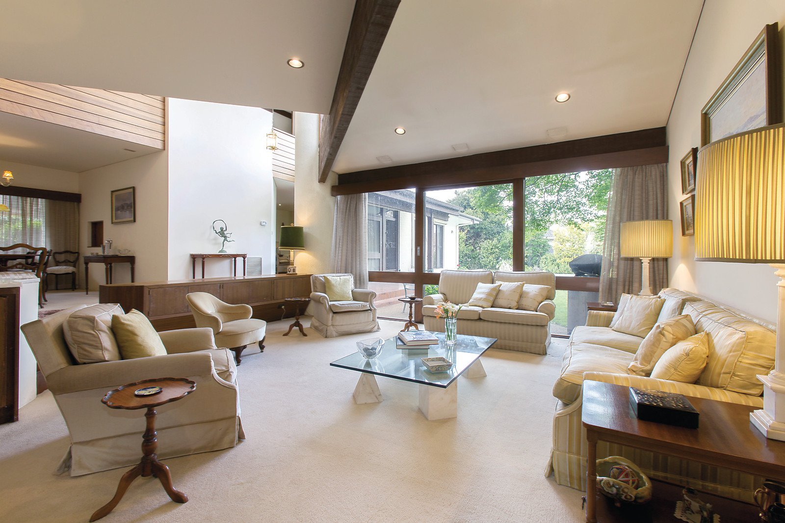 This contemporary home in the coveted Riverside Estate is surrounded by leafy streets, concrete paved roads and stunning period homes. On a generously proportioned allotment (760sqm/8,818sqft approx) the design emphasizes natural light, offering a garden aspect from every room. The home comprises 3-4 bedrooms with a main bedroom option on both levels (each with ensuite, WIR), formal living and dining areas, updated kitchen (Miele appliances, stone bench tops) with meals and informal living area that opens onto the expansive rear garden with salt-chlorinated I/G pool, study/retreat, central bathroom and powder room. Situated just moments from the North Balwyn Village shops, Doncaster Road trams, parklands and many excellent schools, the home also features gas ducted heating, reverse cycle air-conditioning, ample storage and remote control DLUG.