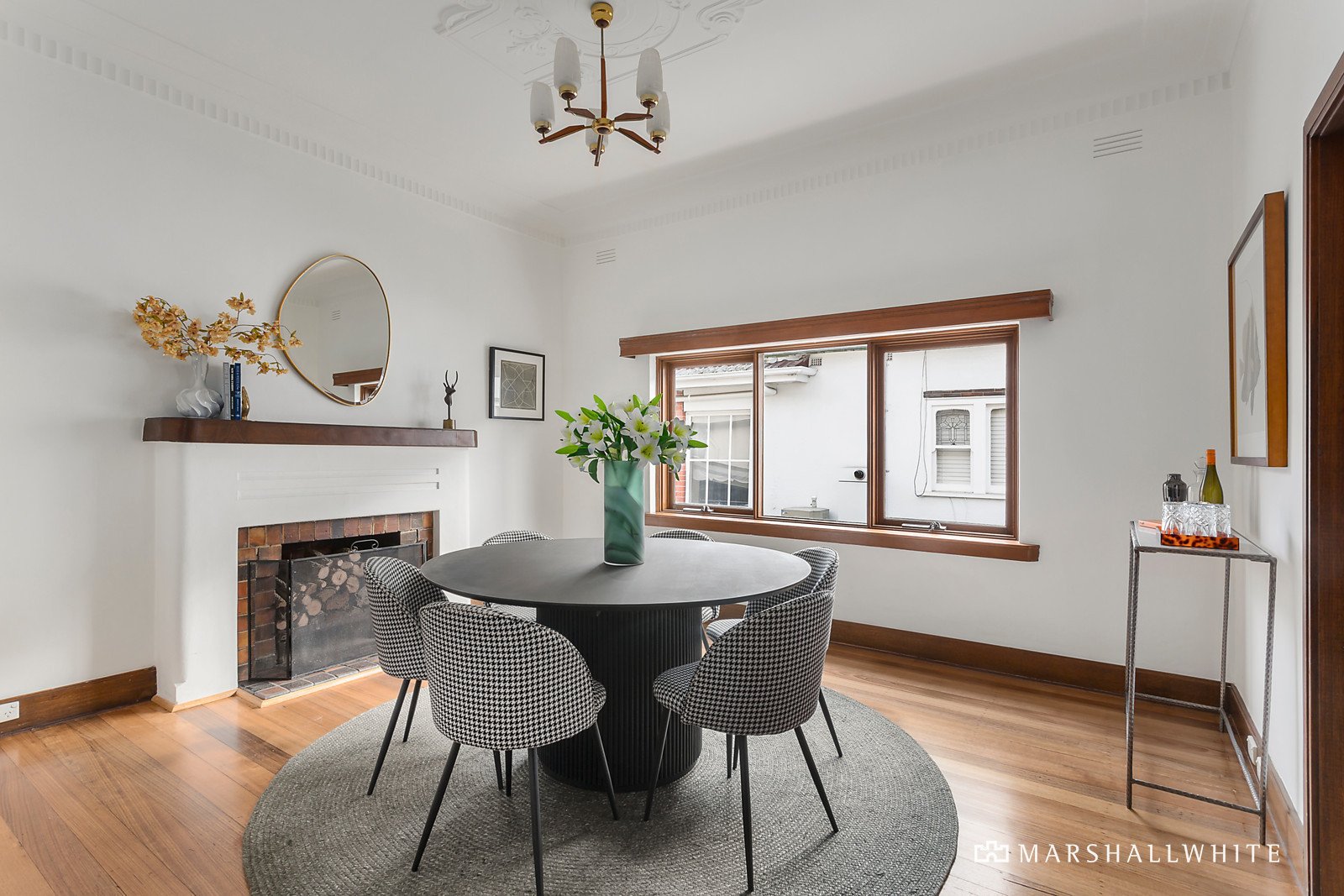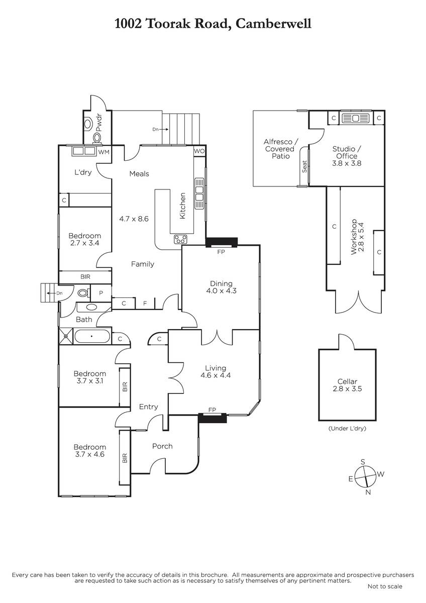 A host of original features including ornate ceilings, timber floors and light-fittings are displayed in the wide entrance hall, gracious sitting room and elegant formal dining room, both with open fireplaces. The three double bedrooms, all with built in robes are accompanied by a pristine bathroom with separate toilet. The light-filled family room with a superbly equipped kitchen opens to the deep private leafy garden. There is also a freestanding studio or home office/gym with kitchenette.