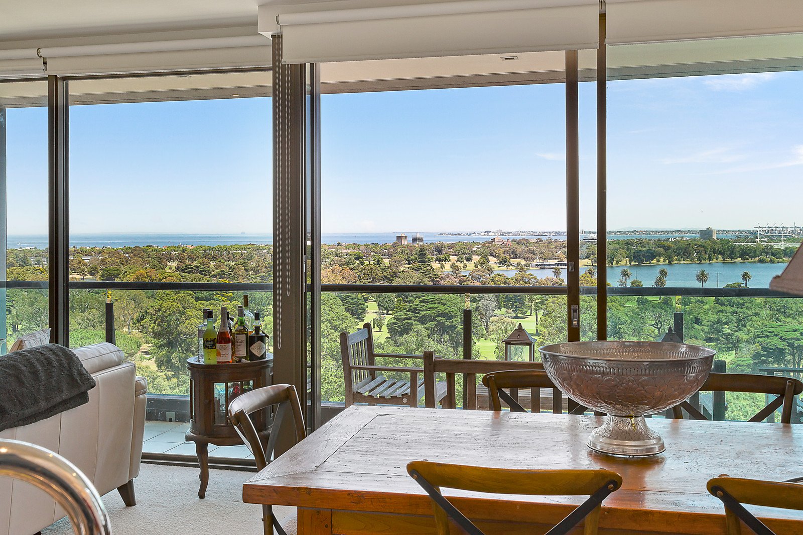 Perfectly designed and oriented to frame Melbourne's most spectacular panorama, this superior, two bedroom luxury apartment sits proudly on the tenth floor of the highly-coveted Metropolis Building. As it reveals 180 degree views that span from the towers of the CBD, across Albert Park Lake, to the waters of Port Phillip Bay and down to the Mornington Peninsula, the apartment immediately announces itself as a rare home of theatrical visual impact.