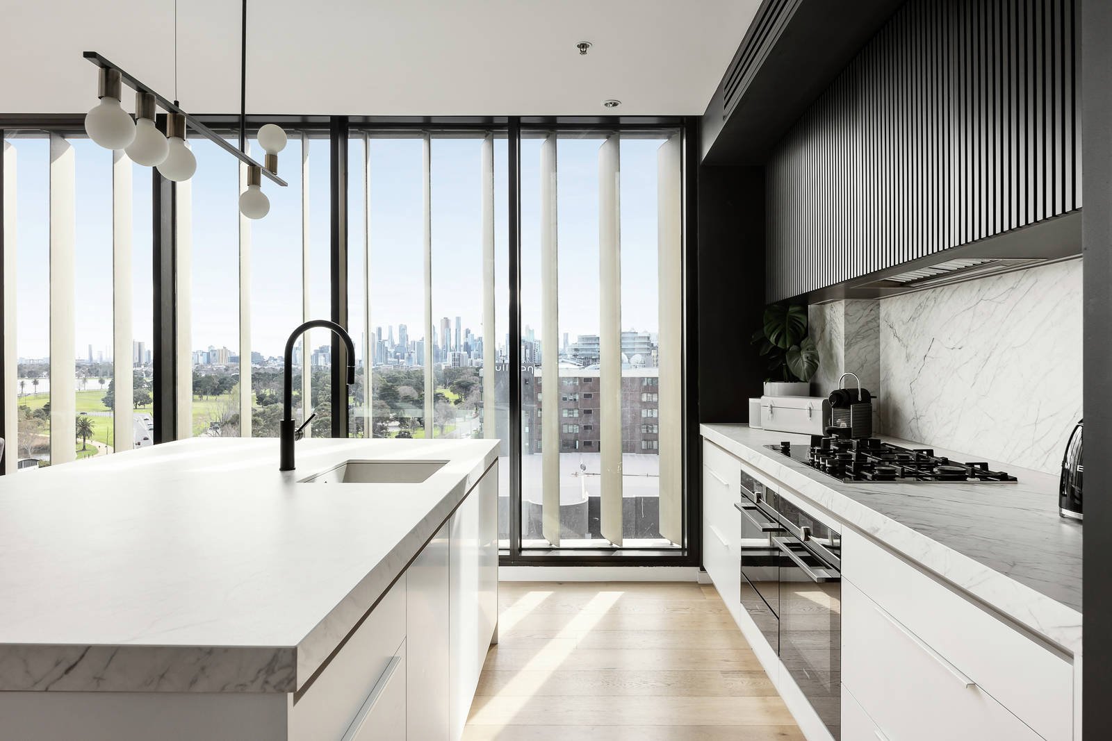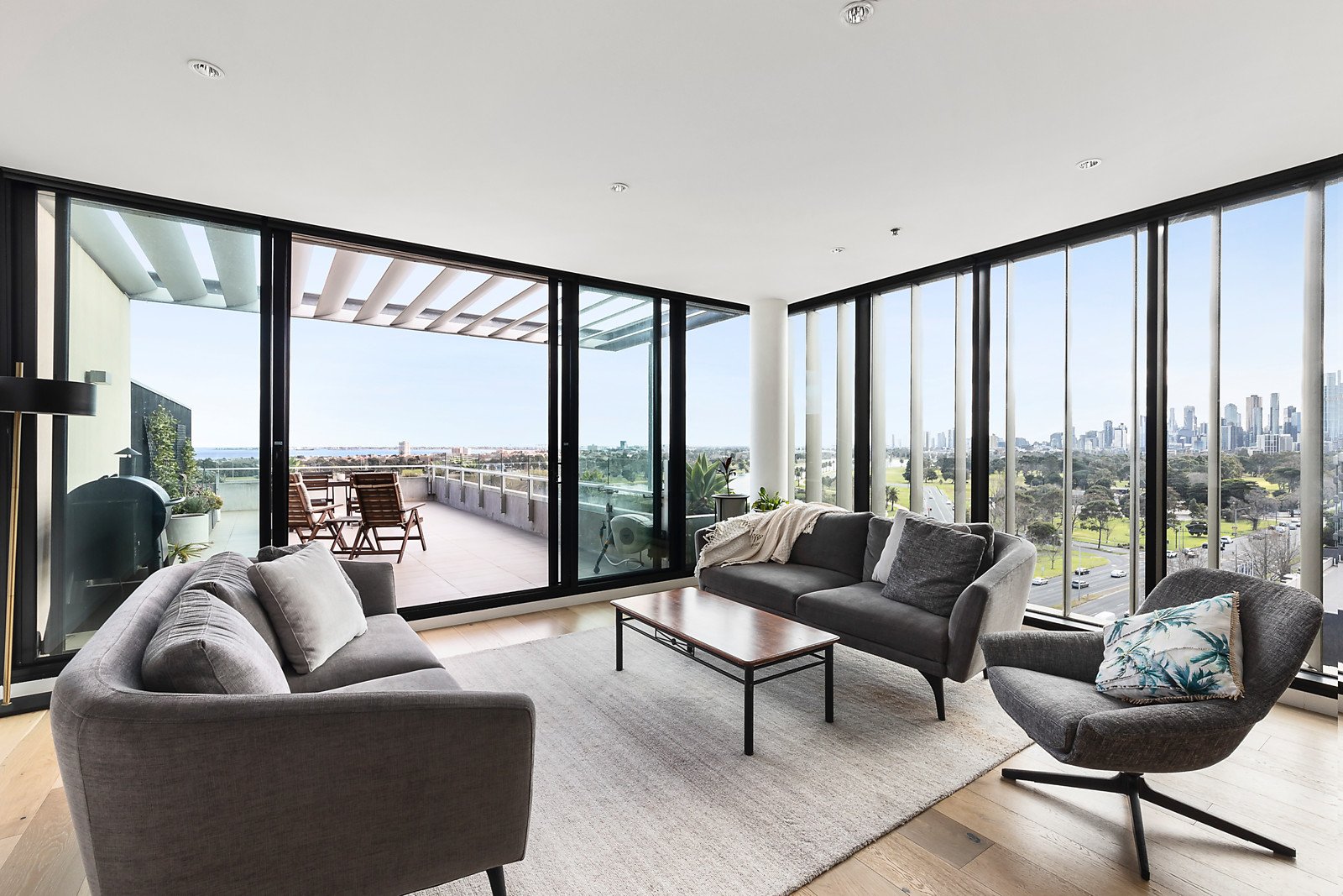 Embracing 180-degree uninterrupted views from the bay to Albert Park Lake and the city skyline, this sub-penthouse's lavishly refurbished dimensions showcase designer style, bespoke finishes and generous indoor-outdoor proportions.