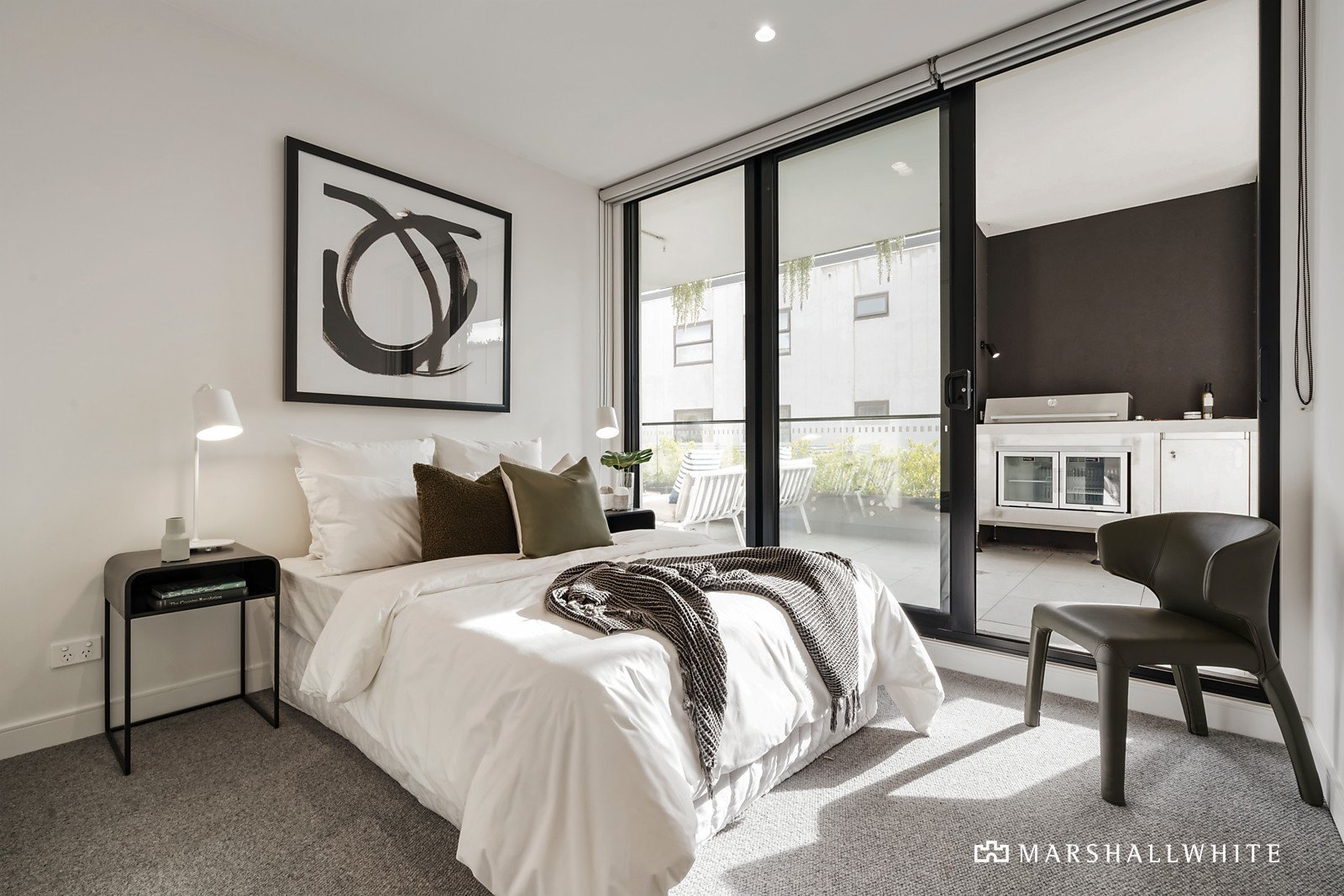 Impeccably crafted, a generous yet cosy open-plan living area is warmed by a gas log fireplace and underpinned by a gourmet kitchen with porcelain slab bench tops, stainless steel European appliances and an integrated refrigerator, all with seamless connection to a broad balcony that allows you to gather around its built-in BBQ while basking in the afternoon sun. Each of the bedrooms are finished with built-in robe storage and balcony-access - the master with its own vogue ensuite - plus there is central heating, air conditioning and a laundry. Accessed securely via video entry, the apartment also offers a pair of elevator-adjacent parking spaces in the basement, as well as a store room and bike storage.