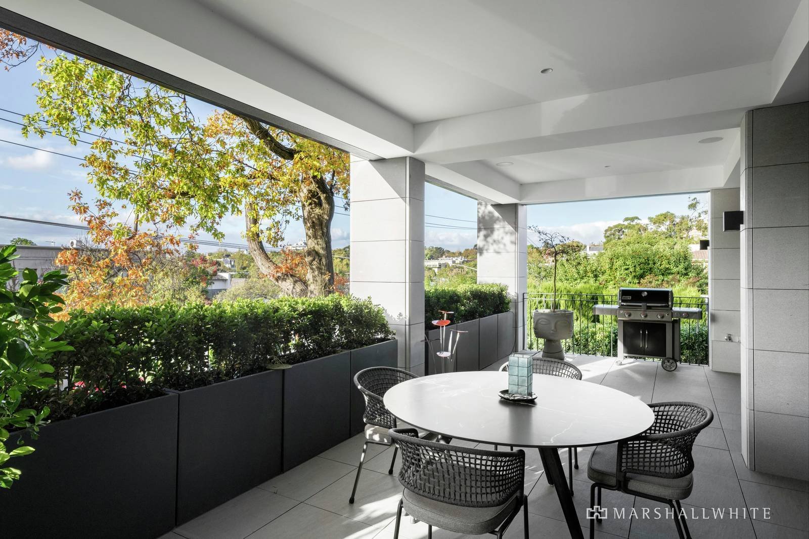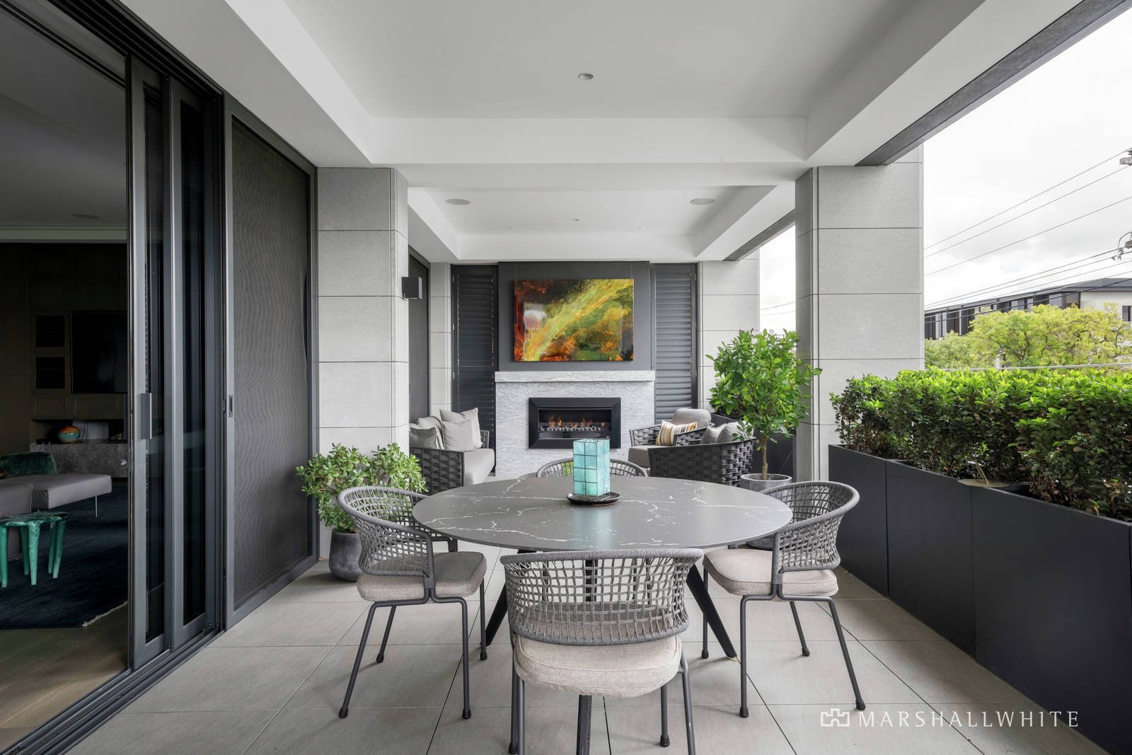The signature style, quality and sophistication of a Demaine Partnership design is displayed throughout every dimension of this stunning boutique residence, one of only five. Spectacular in scale, lavishly finished and boasting an expansive north-facing terrace, it delivers unparalleled lock up and leave luxury on the doorstep of Toorak Village.