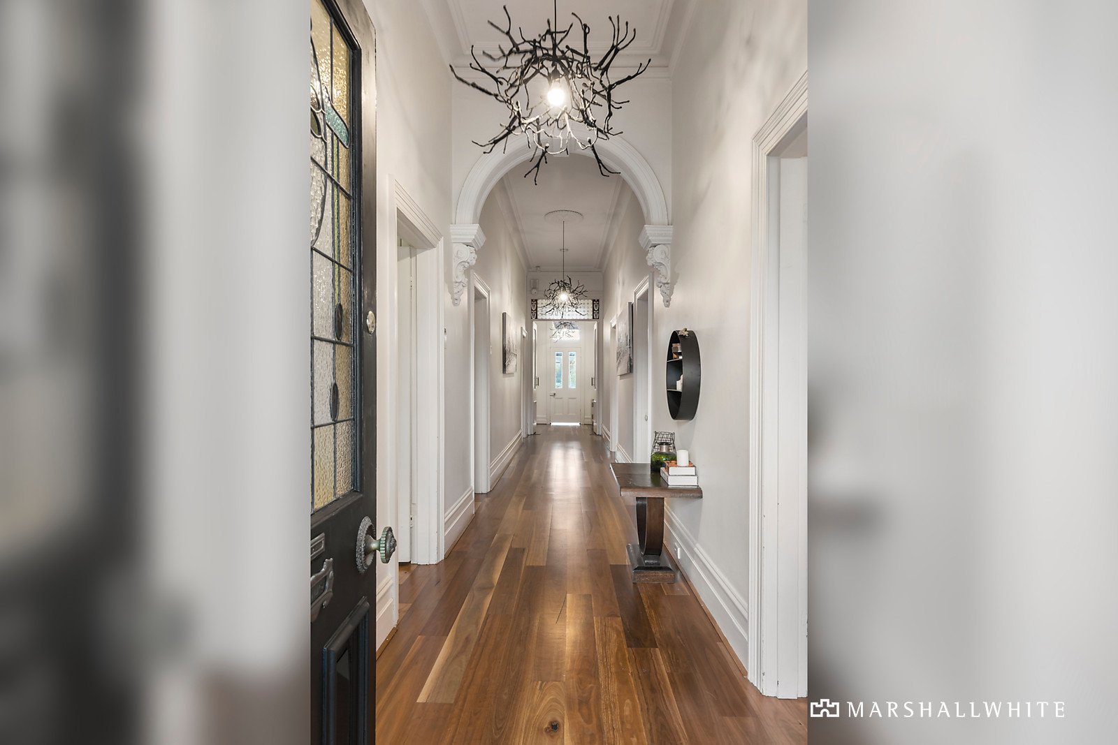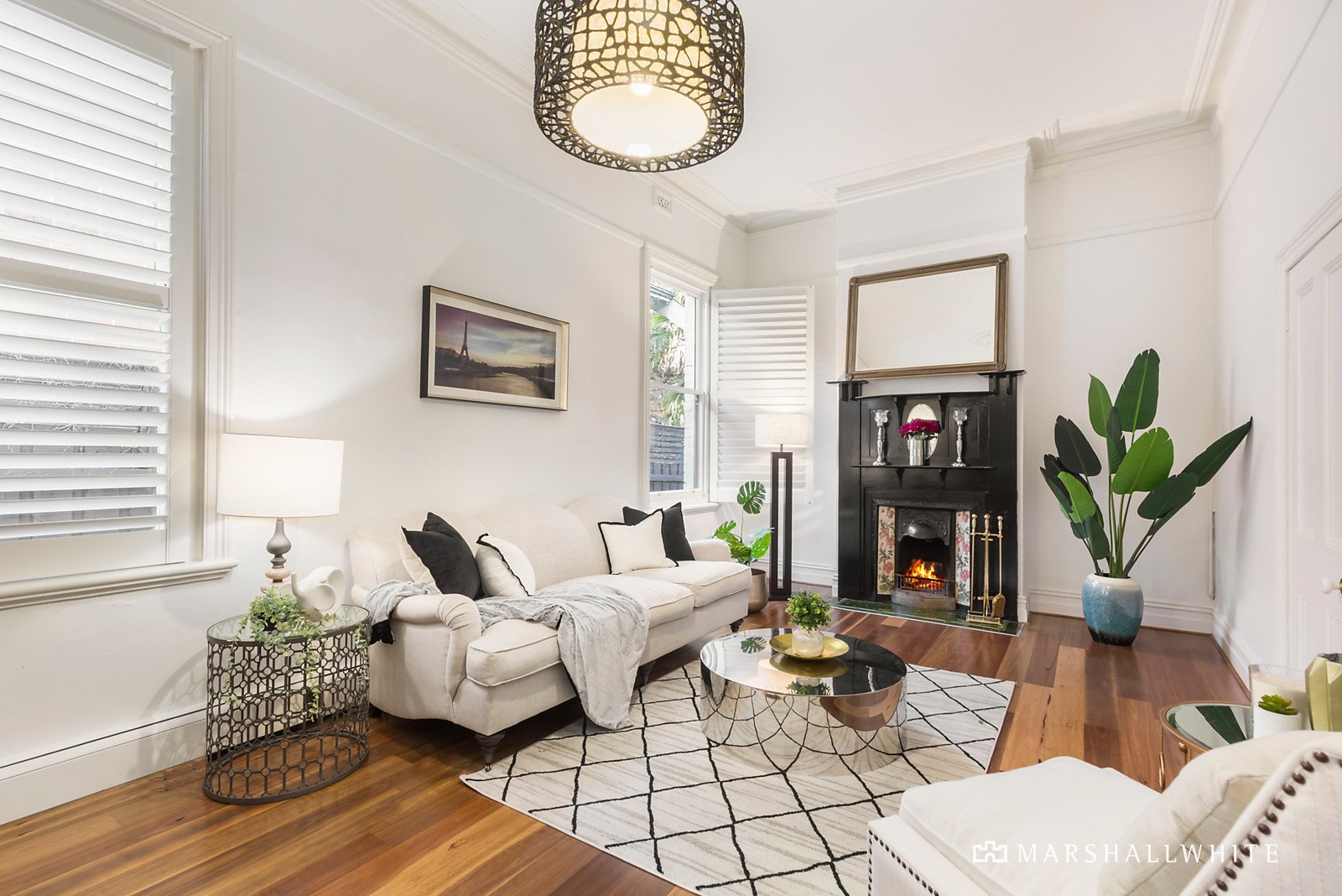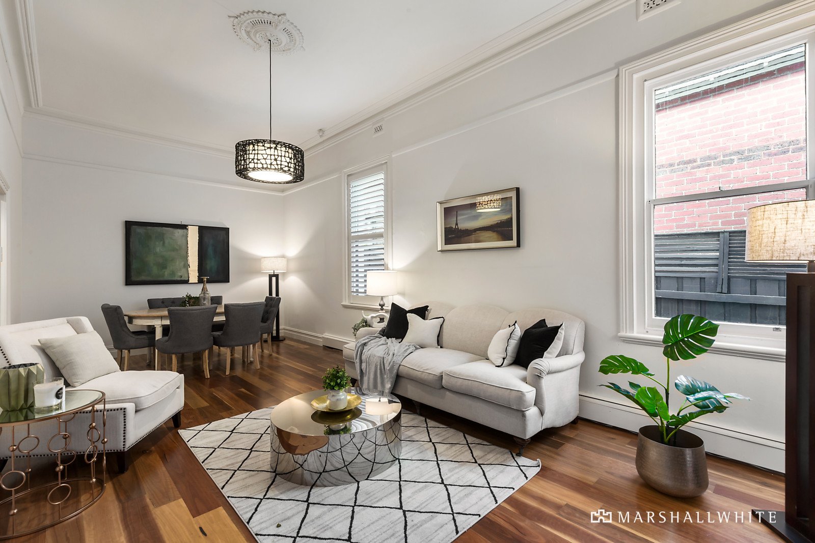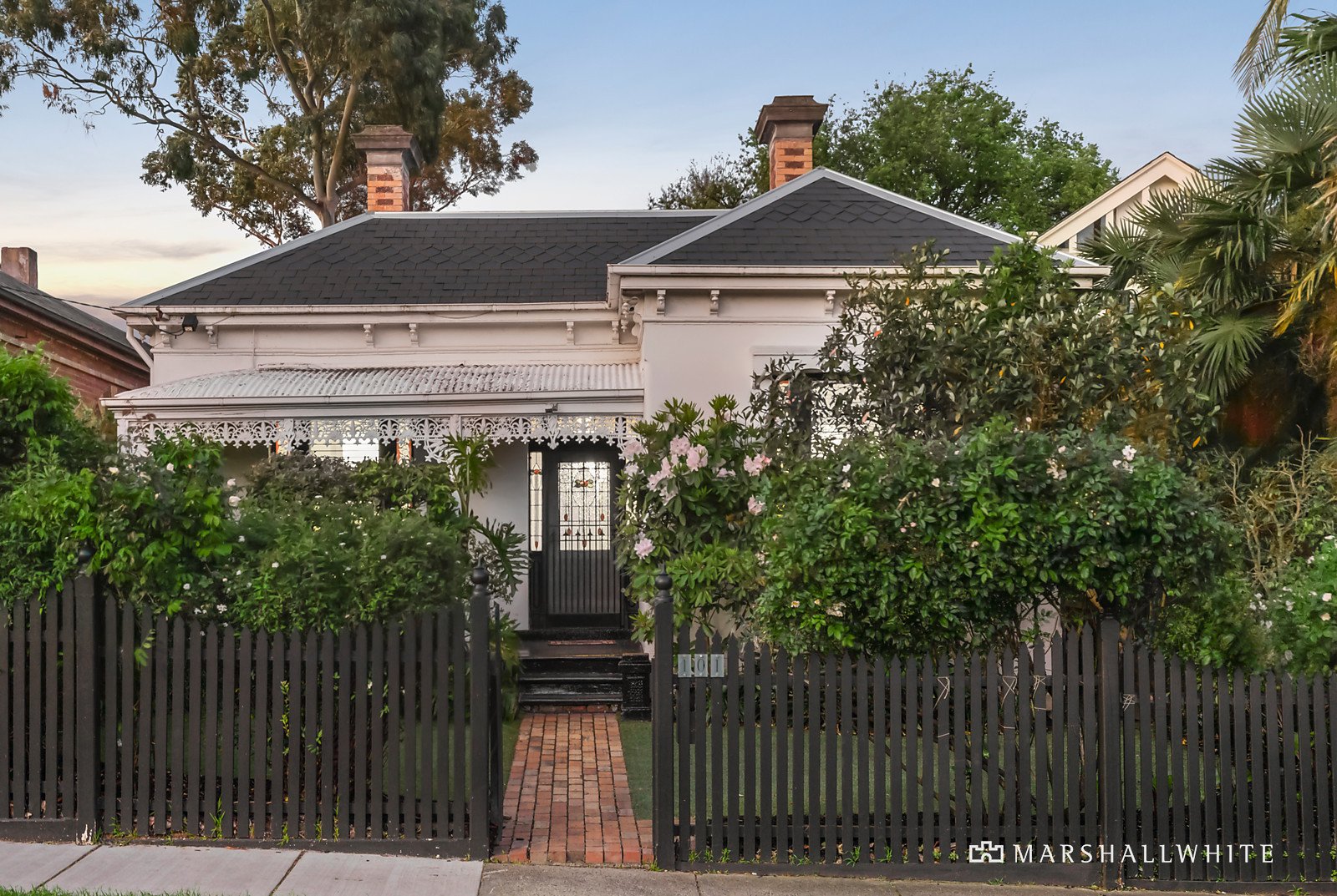 Positioned behind a picket fence and lush front garden, this superbly presented slate roofed Victorian family home is highlighted by a double storey north-facing rear extension blending perfectly with the classic period features including iron lacework verandah, coloured leadlight glass, ceiling roses and central polished timber arched hallway. With a fully refurbished interior highlighted by a classic black and white theme throughout and accommodation featuring a generous sitting and dining room combined, fitted study and a family bathroom. Plus four zoned bedrooms, upstairs main with a WIR, luxurious ensuite, retreat and balcony overlooking a deep rear garden. A generous family living and dining room is flooded with natural light from floor-to-ceiling glass walls and includes a superb kitchen with prestige Miele appliances, stone bench-tops, WIP and computer station. Flowing to a deck, solar-heated pool and the garden lined with ornamental trees - providing marvellous facilities for indoor/outdoor relaxation and entertaining with families and friends. Other features of this stunning home include Plantation shutters, hydronic heating, open fireplaces, reverse cycle air conditioners (4) high-quality fixtures and fittings plus a remote 3-car garage with rear lane access and room for a storeroom or possible home office.