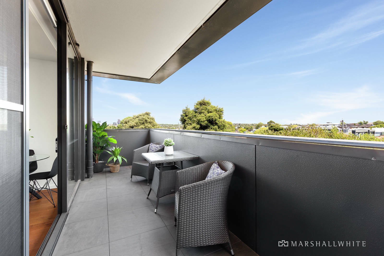 The designer kitchen impresses with Elba-style stone benchtops, sleek integrated Bosch appliances, and a seamless flow into the open-plan living and dining area. Expansive commercial-grade, double-glazed windows flood the space with natural light, opening to a generous balcony with leafy outlooks—perfect for entertaining or relaxed alfresco dining.