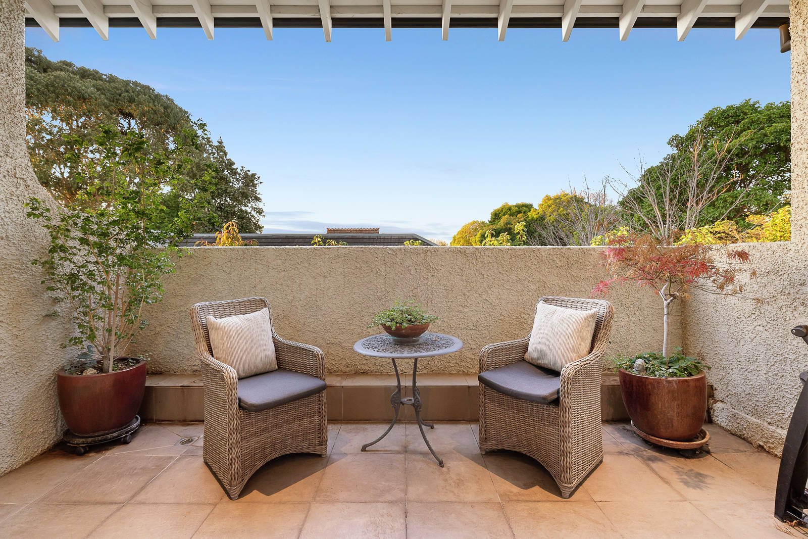 The timeless architectural themes of the exterior design are also reflected inside where oak parquetry floors and high ceilings define the entrance hall, generous light-filled living and dining room and separate gourmet kitchen appointed with stone benches and Miele appliances. The living area opens to a broad north-facing covered balcony offering wonderful leafy vistas. An adjacent retreat or home office is also ideal as a third bedroom if required. In a separate wing, the lavish main bedroom with walk in robe and luxurious en suite is matched by a second bedroom with built in robe and a stylish bathroom.