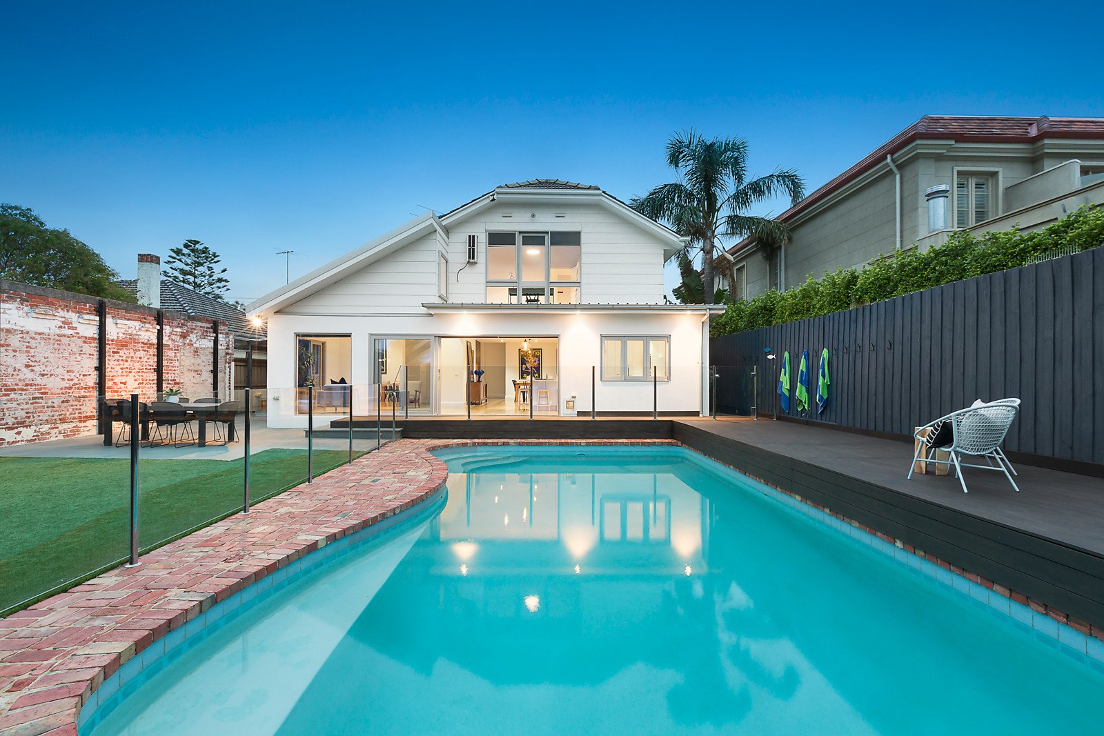 Love this home for its fine fusion of a contemporary renovation and 1930s origins, and a desirable address near schools, Church Street, Bay Street and transport. Family-size spaciousness is enhanced with private low-maintenance outdoor living and a pool on 638 square metres of land approx. Three living zones, five bedrooms, two bathrooms and plenty of features add up to easy living, a few doors from Firbank and near Brighton Grammar and Brighton Primary School. Enter via the remote-control car gate and admire the classic portico entry, original leadlight and timeless elegance that makes this home so inviting. Today's excellence shows in the renovated kitchen with two ovens, induction cooktop, views of the gas-heated pool, outdoor servery, and Smartstone island bench. Bedrooms and bathrooms are zoned over two levels, and there's a study nook downstairs. Open fireplaces feature in two living rooms, and stacking sliding doors open onto the garden from the family room. Yesteryear elegance is revealed in the beautiful plasterwork, marble fireplace surround and feature windows. Outside is all about effortless enjoyment with Modwood decking, poolside shower, artificial turf, and undercover space for an open-air gym and bike storage. Short walk to trains, cafes and shops.
